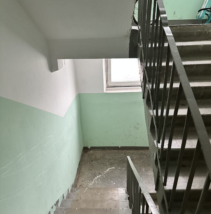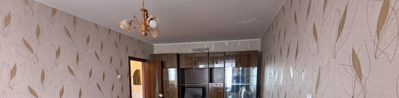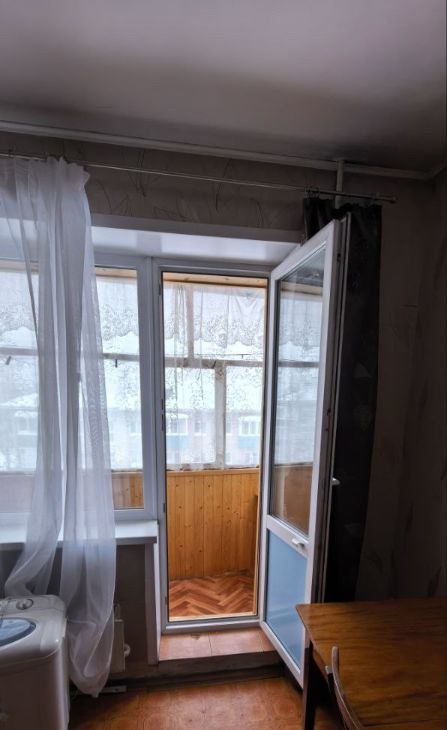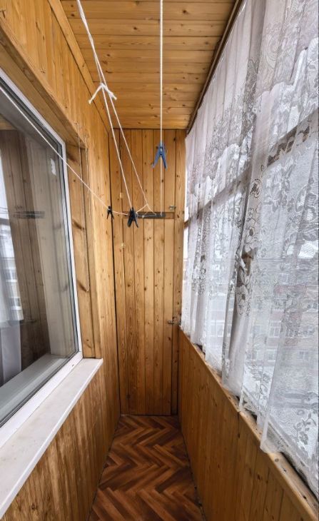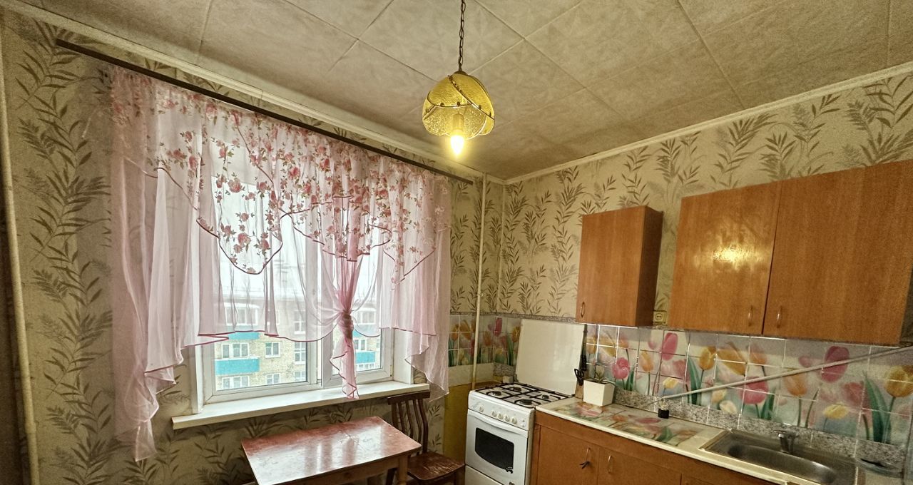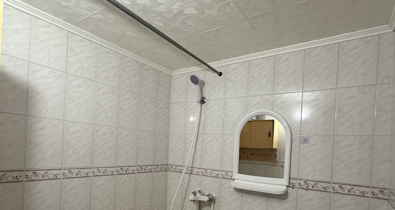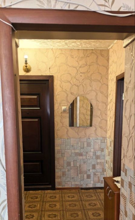 Внутри квартиры совмещенный санузел с ванной в кафеле. Светлая кухня, частично остаётся мебель.