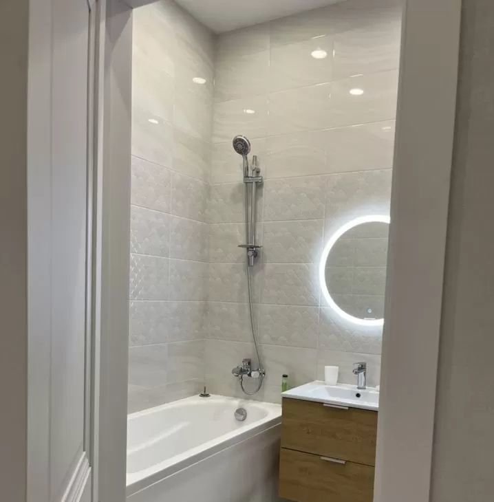 Квартира с дизайнерским ремонтом и полностью готова к проживанию. В комнате и на кухне есть вся необходимая мебель. Кухня площадью 9 кв. м оборудована современной техникой: кондиционер, холодильник, посудомоечная и стиральная машины, телевизор. В ванной комнате установлена ванна, что идеально для комфортного отдыха после рабочего дня.