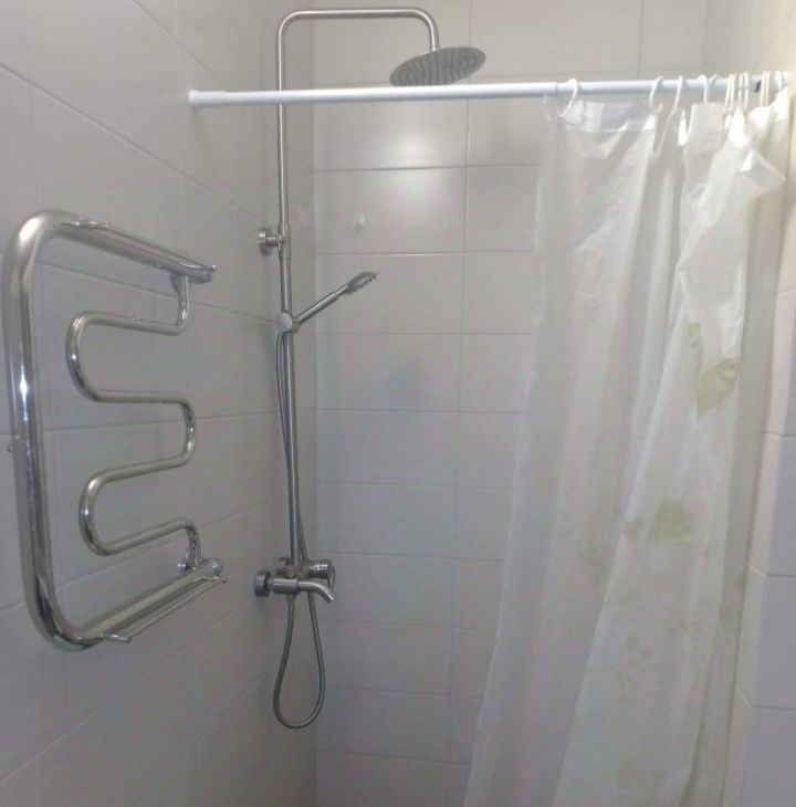 Ванная комната: душ-инсталляция, стиральная машина, электроводонагреватель (на случай отключения горячей воды летом), полотенцесушитель.
