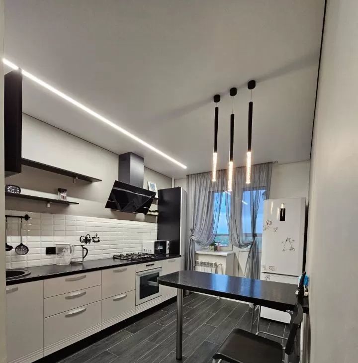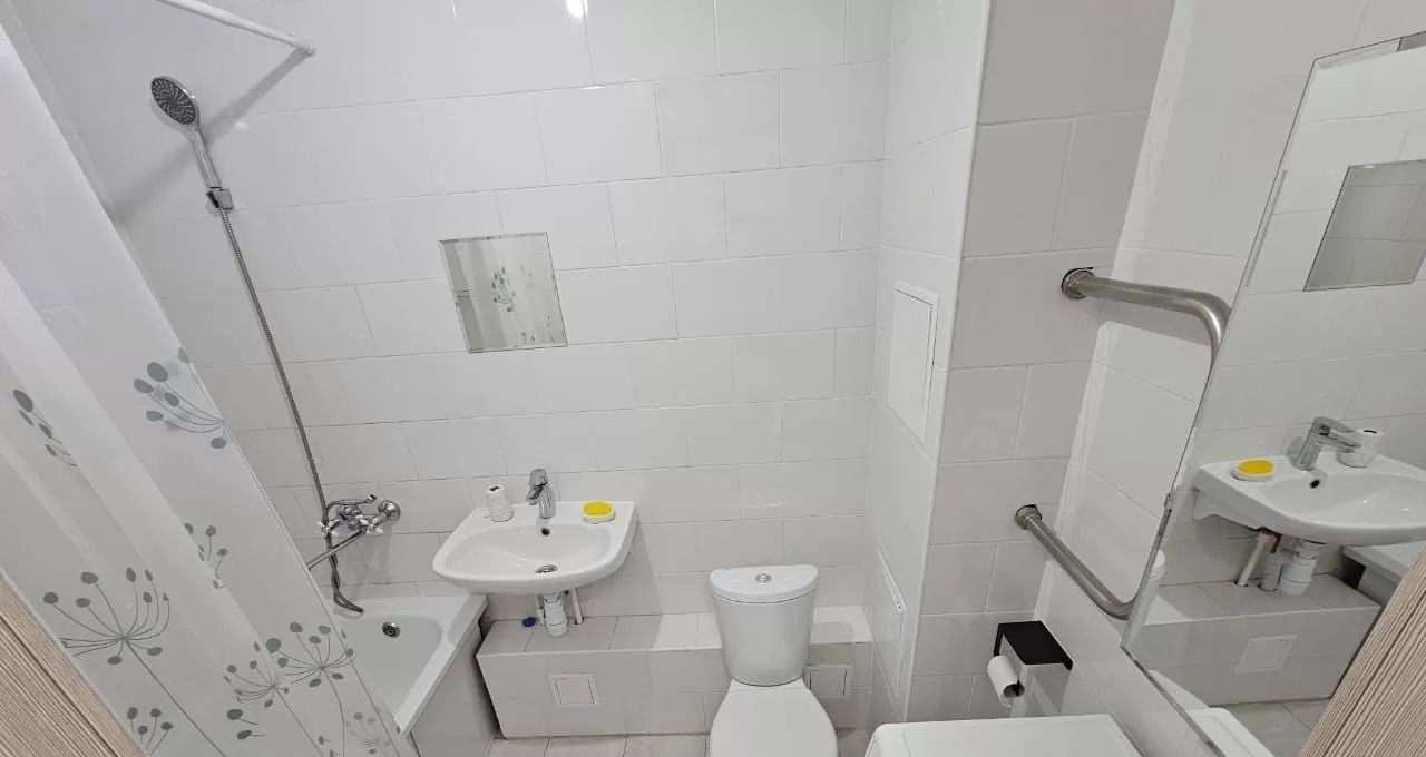 В квартире сделан качественный евроремонт, установлена современная техника: кондиционер, холодильник, телевизор и стиральная машина. В кухне и комнате есть вся необходимая мебель для комфортного проживания. Санузел совмещенный, оборудован ванной. Также имеется лоджия, где можно наслаждаться свежим воздухом.