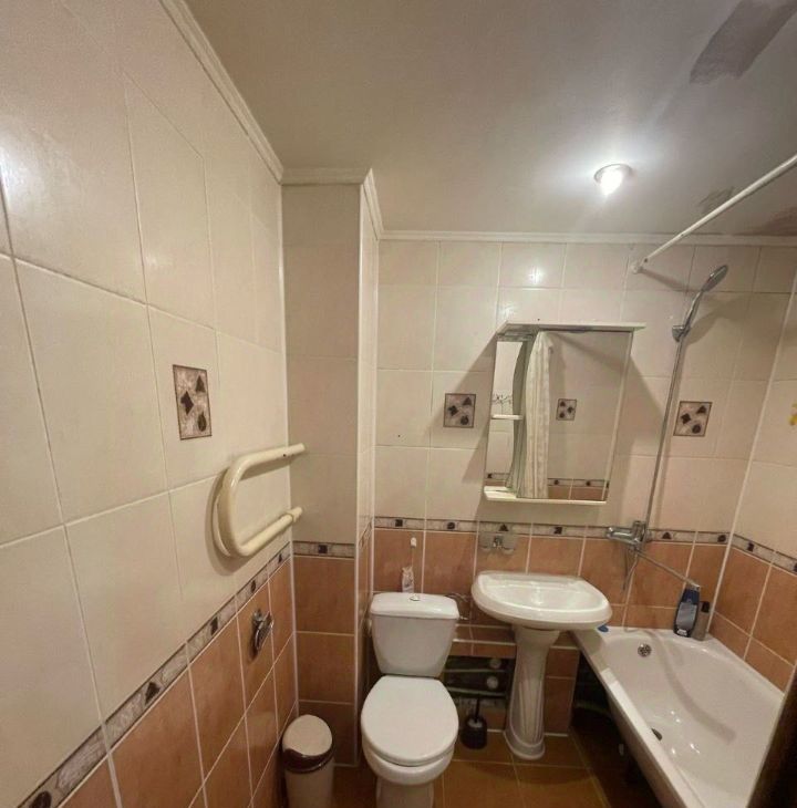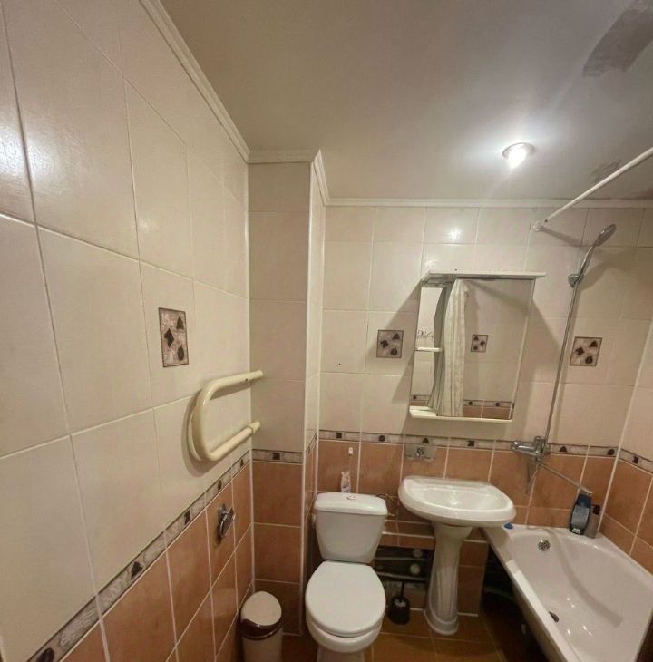 В квартире есть всё необходимое для комфортного проживания. Выполнен качественный ремонт, интерьер оформлен в светлых тонах, что делает пространство более просторным и уютным. Кухня оснащена современной техникой, есть удобный обеденный стол. В комнате установлены удобная кровать и вместительный шкаф. Санузел совмещённый, оборудован новой сантехникой.