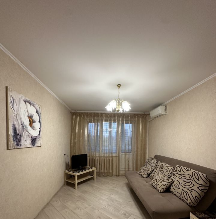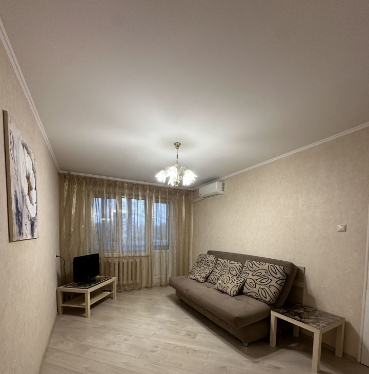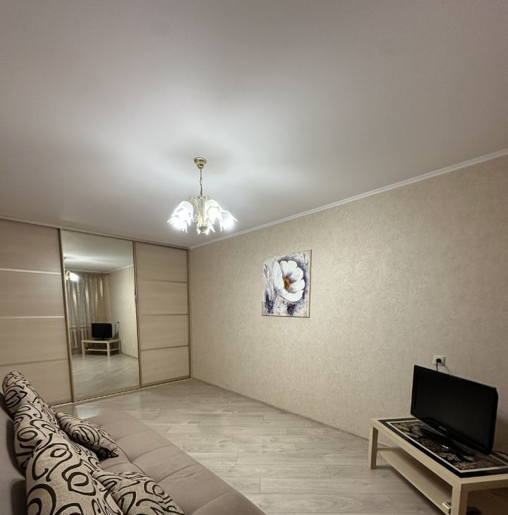 В квартире имеется все необходимое : кухонный гарнитур , газовая плита , микроволновая печь , посуда , раскладной диван , телевизор , кондиционер , большой шкаф купе , стиральная машина , ванная. В квартире имеется просторный балкон!