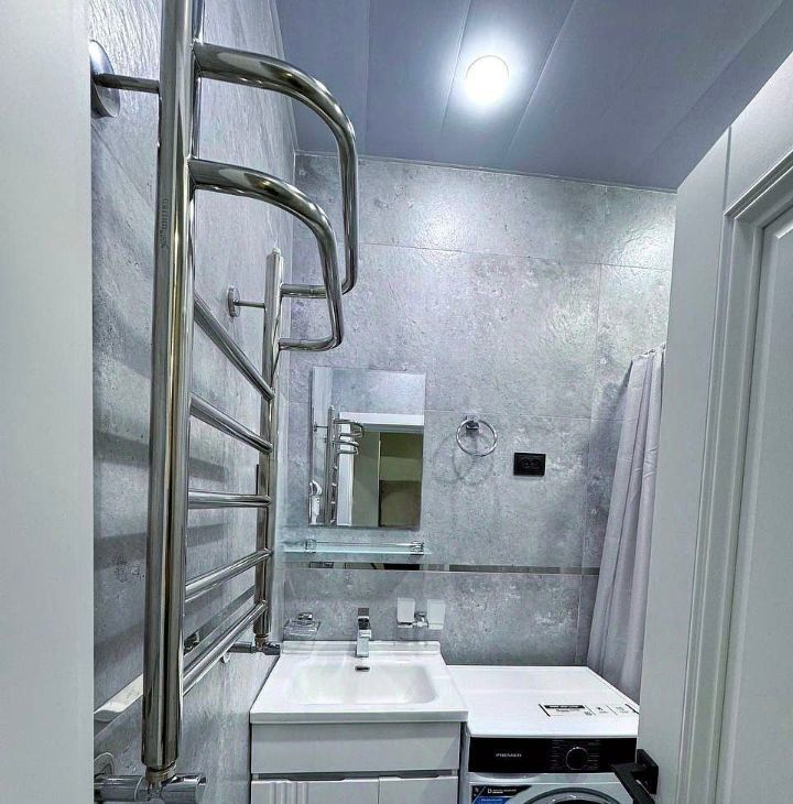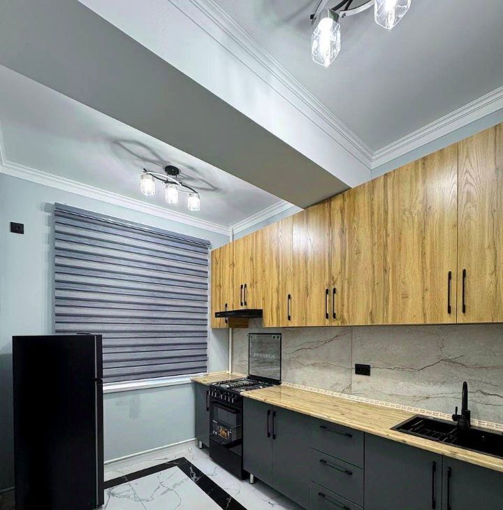 В квартире сделан свежий ремонт, что позволяет сразу заехать и наслаждаться уютом. В комнате есть вся необходимая мебель и техника: удобный диван, шкаф для одежды, обеденный стол. Кухня оборудована современной бытовой техникой, включая холодильник и плиту. Санузел совмещённый, в нём установлена новая сантехника.