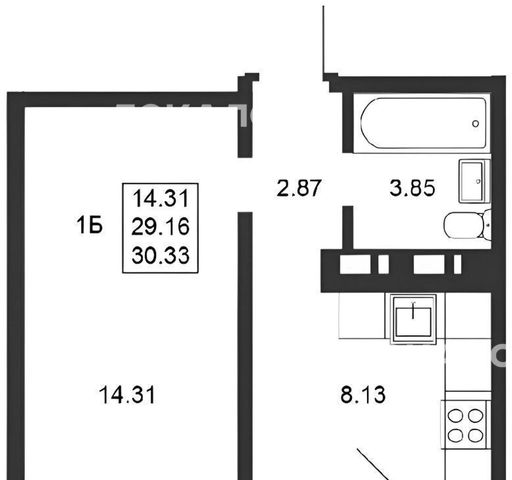 1-к кв. Татарстан, Казань ул. Натана Рахлина, 15к3 (30.9 м²)