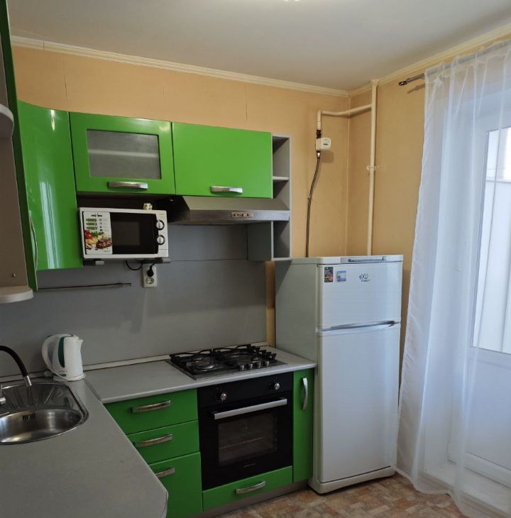 Квартира с косметическим ремонтом 2010 года постройки. Оборудованная кухня- газовая плита, духовка, холодильник, микроволновка, чайник и посуда. В санузле душевая кабина, установлен большой бойлер, стиральная машина.