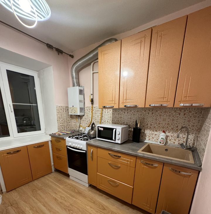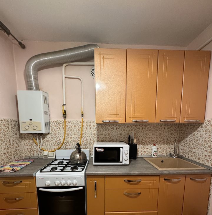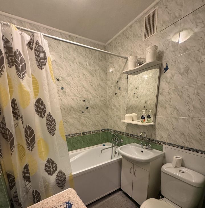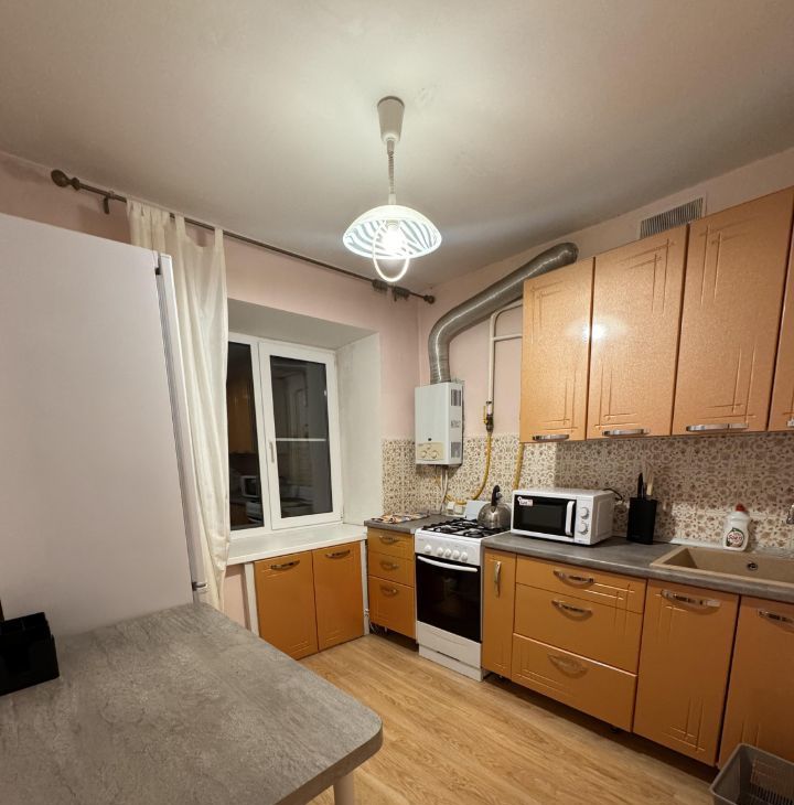 В квартире имеется все необходимое : кухонный гарнитур , газовая плита , духовой шкаф , микроволновая печь , посуда , раскладной диван , телевизор ,отдельная гардеробная зона , ванная , стиральная машина.