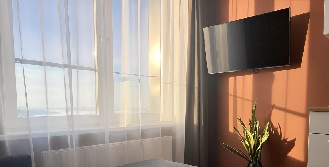 Сдается уютная видовая однокомнатная квартира в доме комфорт-класса Уникум на ул. Новаторов. Из окон красивый вид на реку Казанка. Рядом лесо-парковая зона.