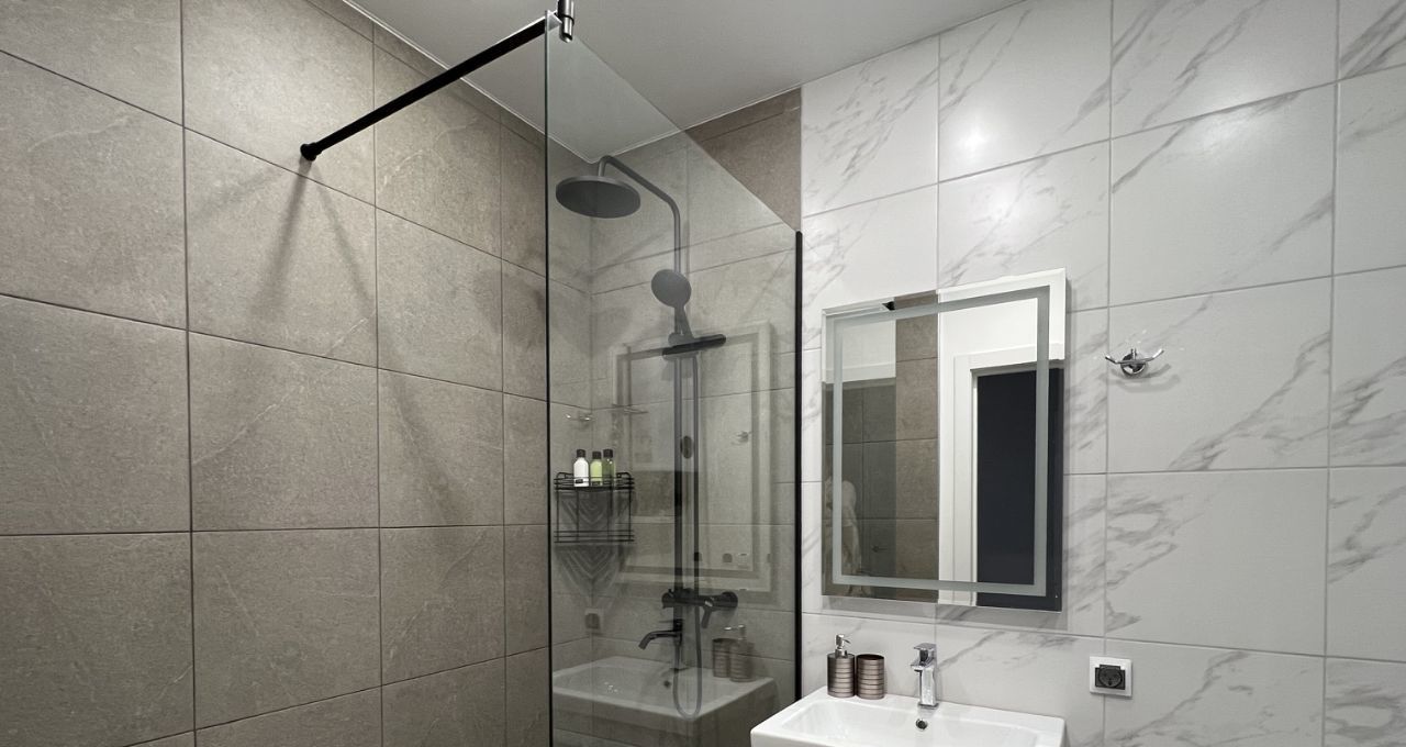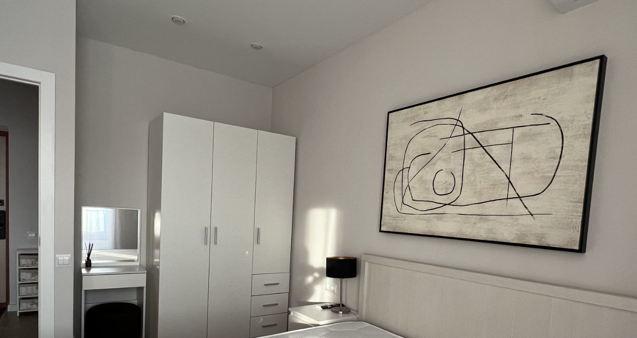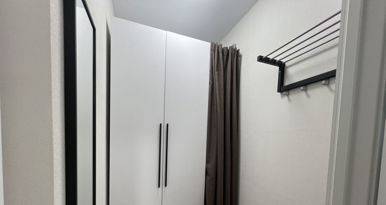 Состав квартиры: прихожая, спальня, лоджия-кабинет, кухня-студия, душевая+туалет.