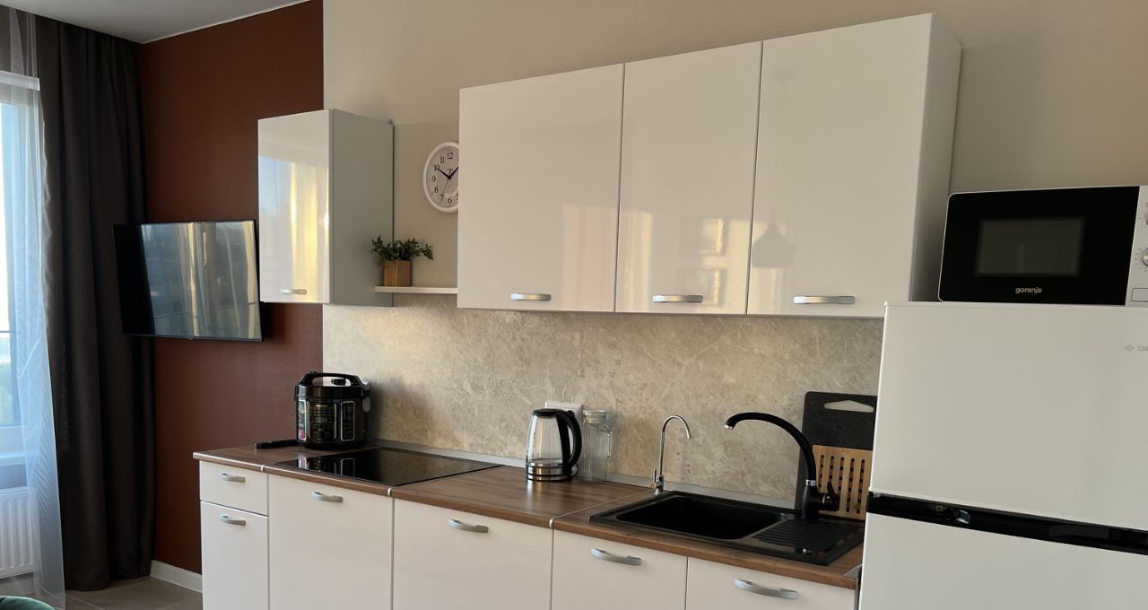 Квартира пригодна для мгновенного заселения. Имеются: ортопедический матрас, подушки-одеяла, постельное белье, комплект полотенец, бытовая химия, утюг, фен, пылесос, хозяйственная утварь, вся необходимая посуда.
