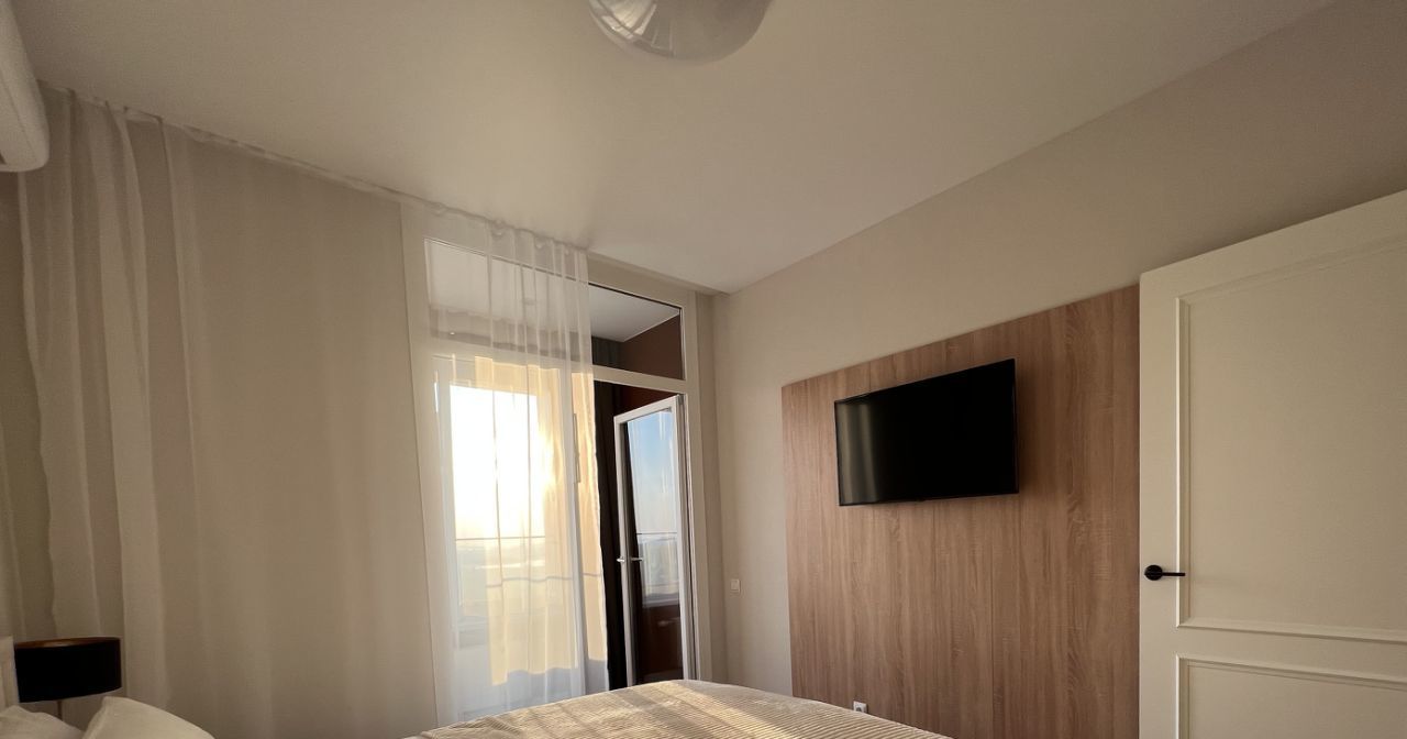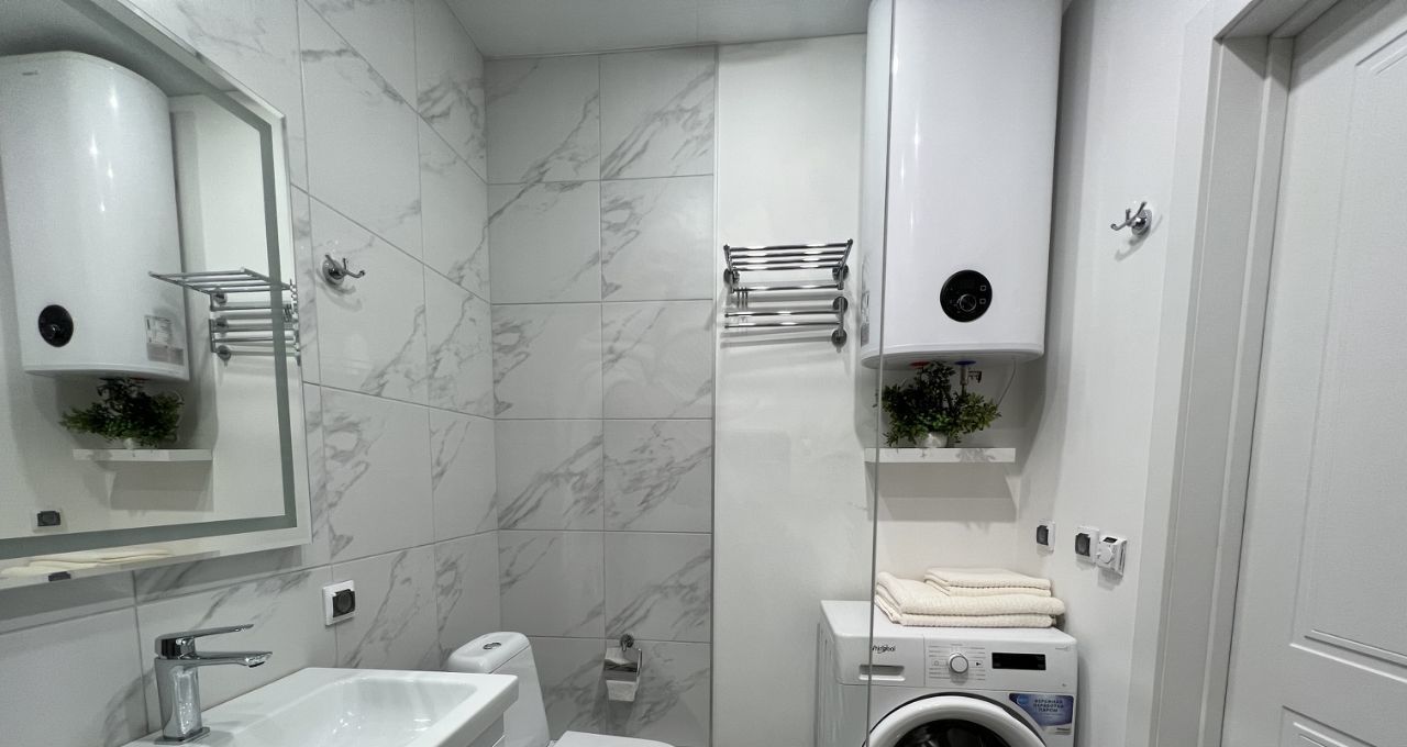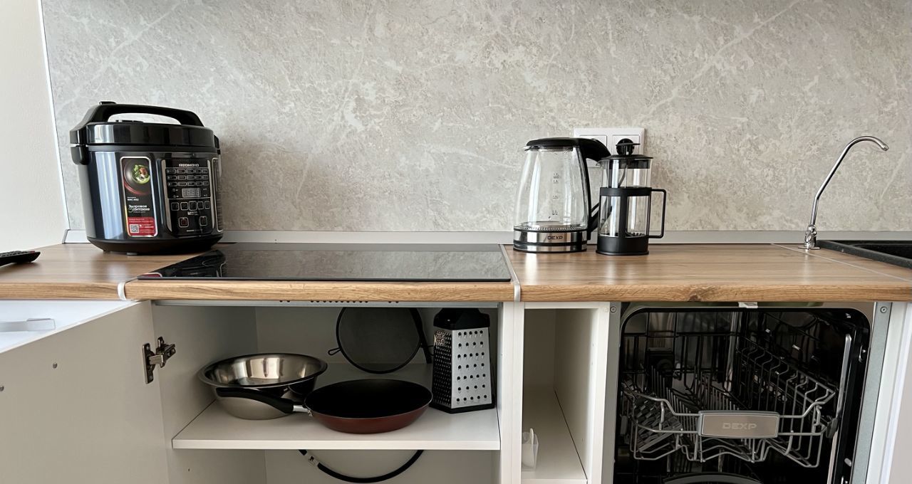 Квартира полностью укомплектована для комфортного проживания. Имеется: кондиционер, посудомоечная машина, стиральная машина, холодильник, плита, микроволновка, мультиварка, ТВ в обоих комнатах, водонагреватель (резервный подогрев воды), удобная раскладная мебель, подогрев пола в ванной, сейф, домофон с видеообзором, электронный замок. Подключена питьевая вода.