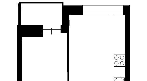 Кухня-гостинная: кухонный гарнитур(со встроенными: холодильником, микроволновкой, индукционной плитой и духовкой), круглый стеклянный стол с раскладным механизмом, 4 велюровых стула, диван с раскладыванием в 2-х позициях и тв с тумбой.