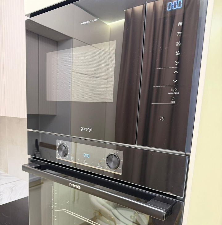 В квартире выполнен дизайнерский ремонт. Просторная кухня оснащена современной техникой: холодильник, духовой шкаф, варочная панель и посудомоечная машина Gоrеnjе .В гостиной установлен кондиционер и телевизор. В спальне мягкая мебель.