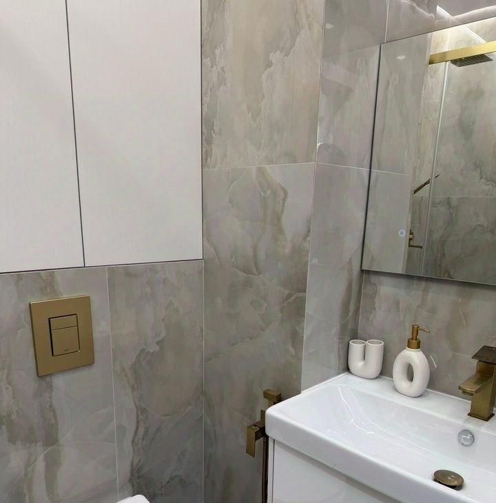 Санузел совмещённый, оборудован душевой кабиной и стиральной машиной. В прихожей предусмотрены вместительные шкафы для хранения вещей.
