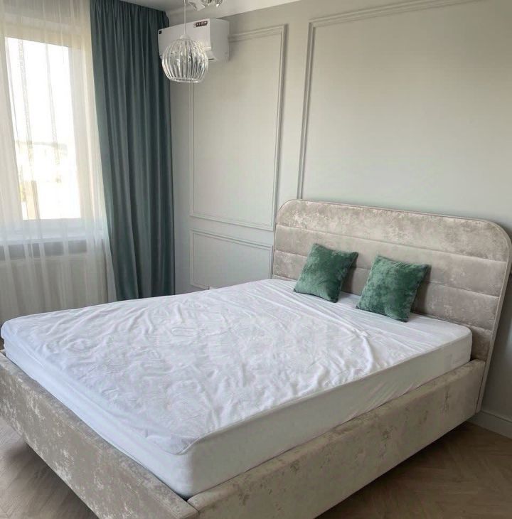 В квартире выполнен красивый и очень качественный ремонт. Диван стоит на кухне. В комнате двухспальная кровать и тумбы. Кондиционер установлен.