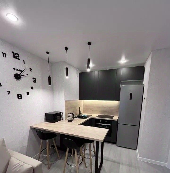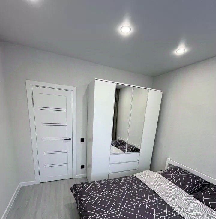 Сдается евродвушка, спальня с полноценной кроватью, а кухня распашонка, с залом ,где стоит диван.