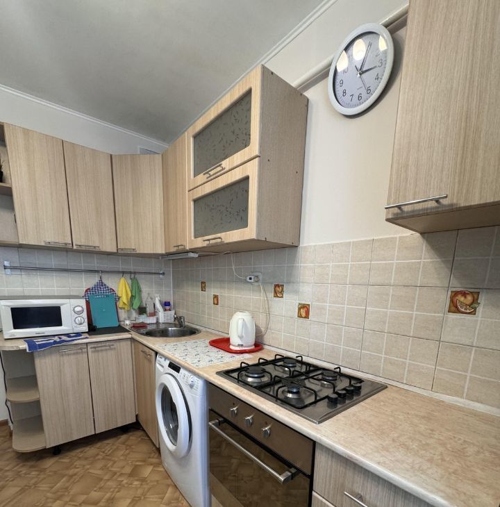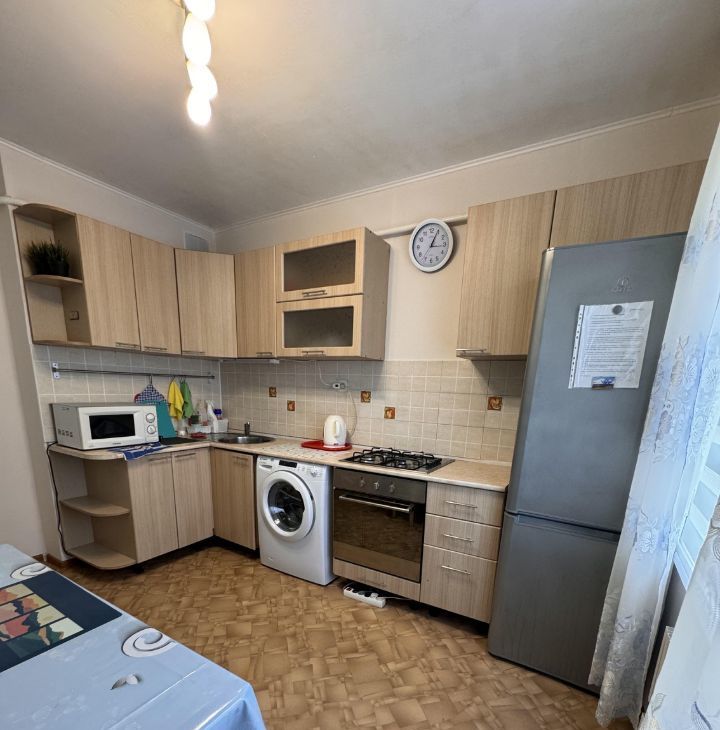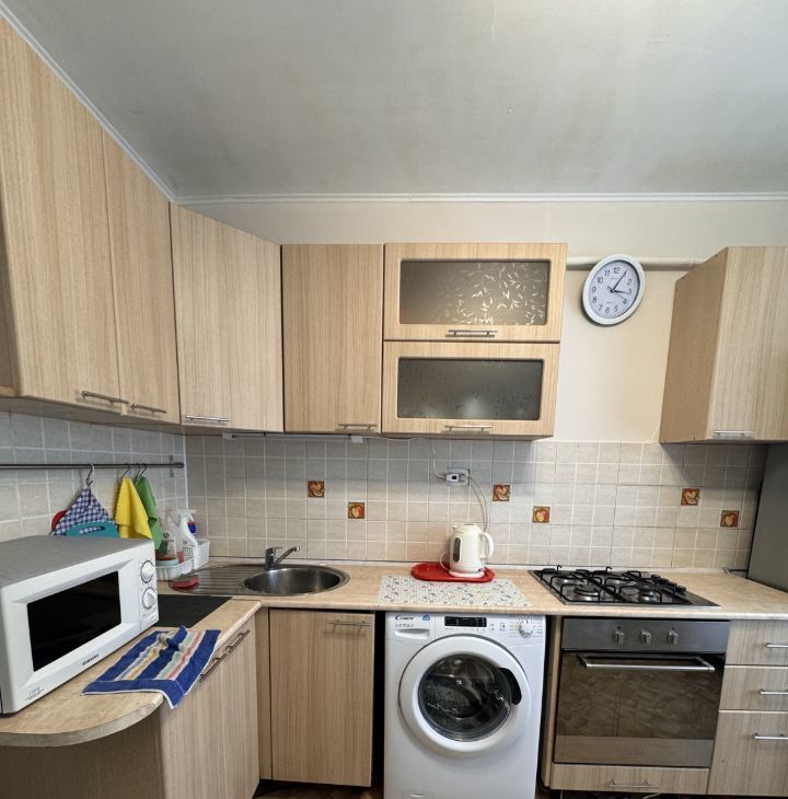 В квартире имеется все необходимое : кухонный гарнитур , газовая плита , духовой шкаф , микроволновая печь , посуда , раскладной диван , телевизор , шкаф для ваших вещей , стиральная машина. Санузел и ванная комната раздельные!