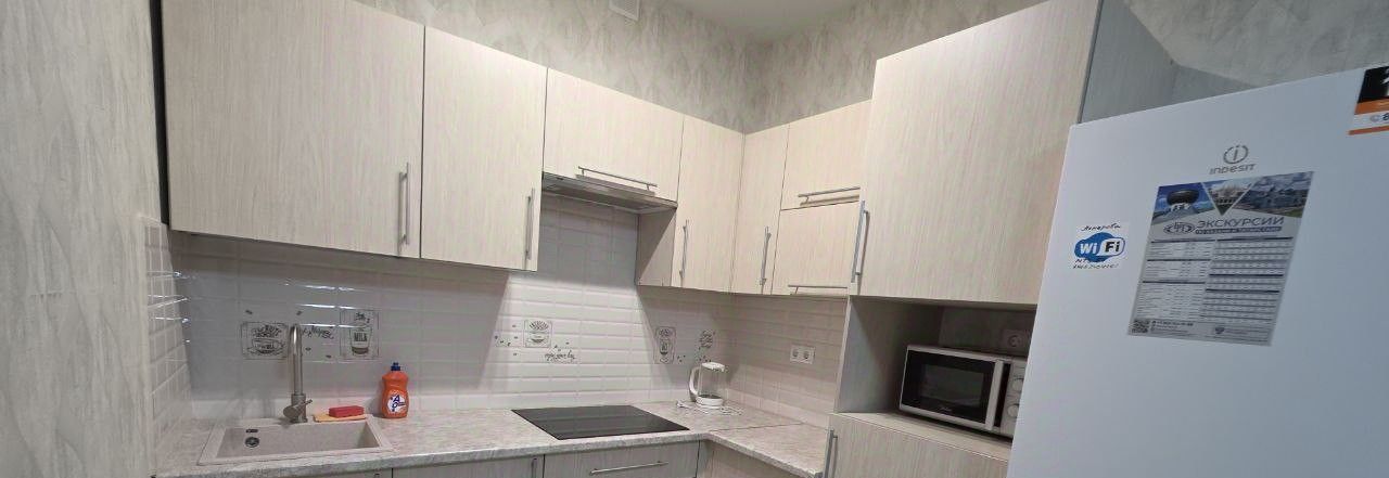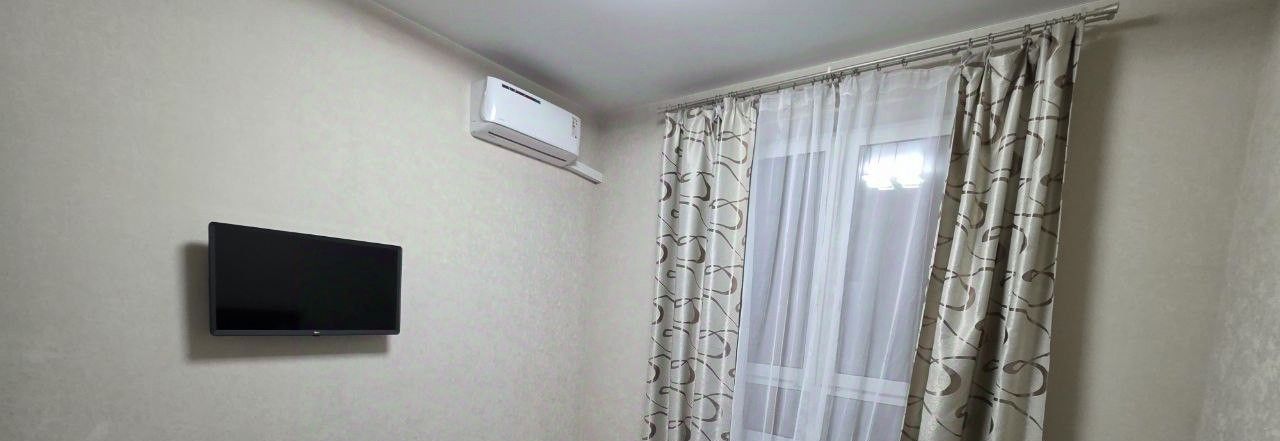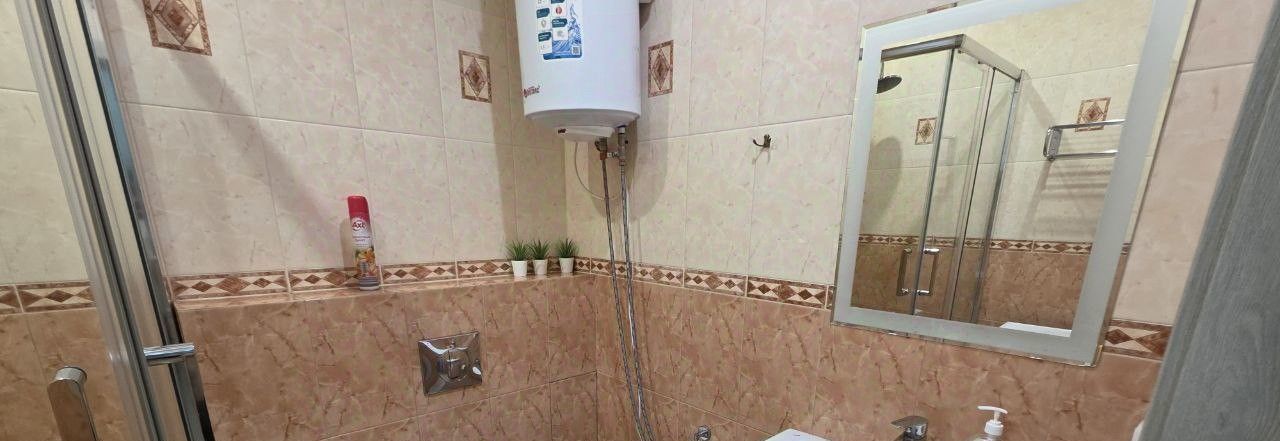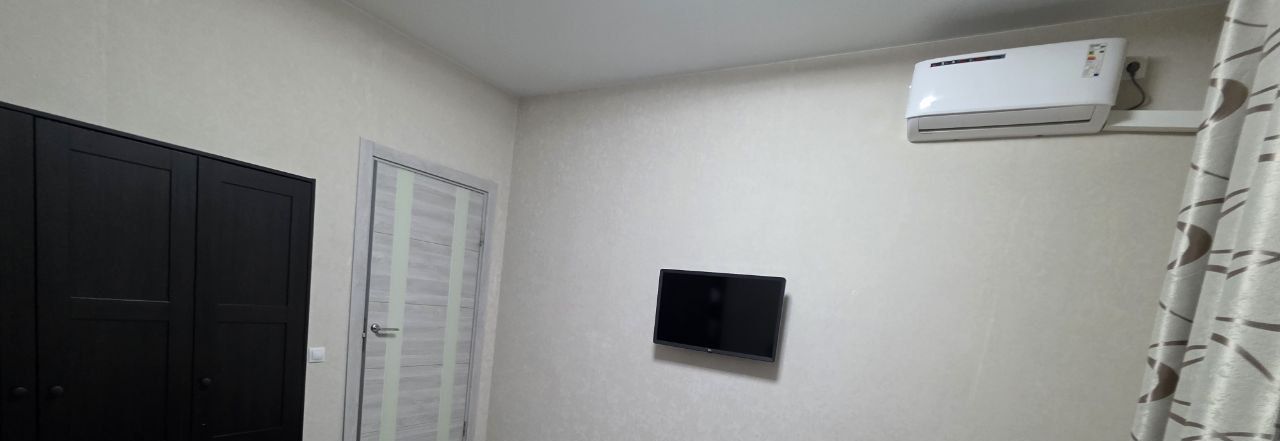 В квартире выполнен косметический ремонт. Кухня площадью 14 кв. м оборудована всей необходимой мебелью и техникой: холодильник, стиральная машина и кондиционер. Комната меблирована, есть телевизор для вашего отдыха. Совмещённый санузел оснащён душевой кабиной, что удобно и практично. Также есть балкон, где можно насладиться утренним кофе или вечерним чаем.
