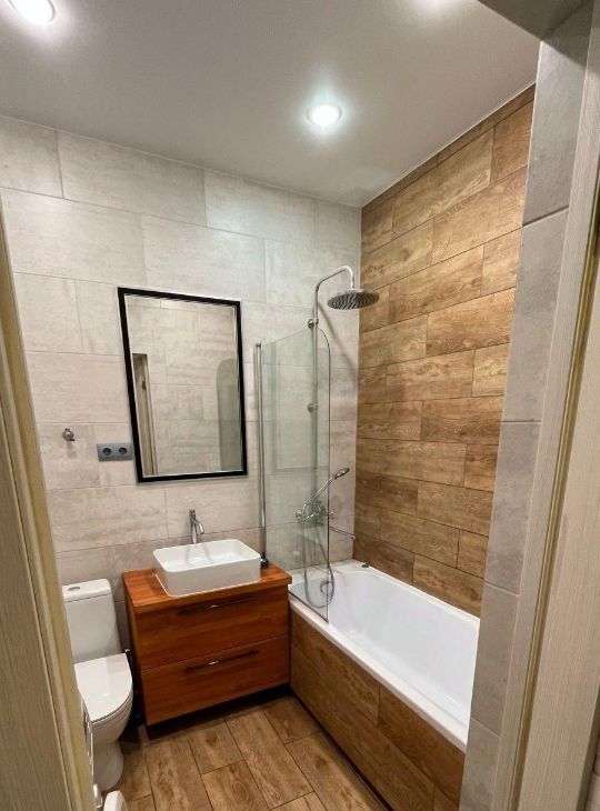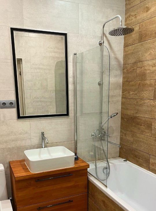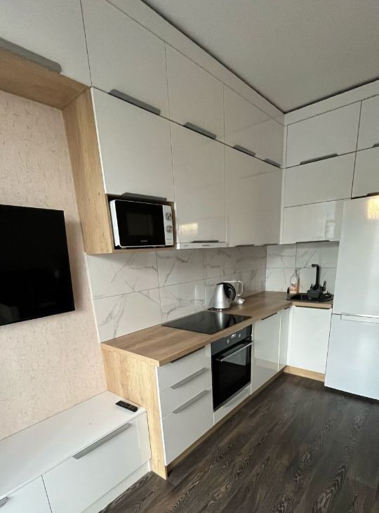 Квартира полностью готова к комфортному проживанию. Выполнен качественный современный ремонт, в интерьере использованы нейтральные и приятные глазу оттенки. В квартире есть вся необходимая мебель и техника: удобный диван, шкаф, обеденный стол и стулья, холодильник, стиральная машина и телевизор. Санузел совмещённый, оборудован современной сантехникой, что добавляет дополнительное удобство.