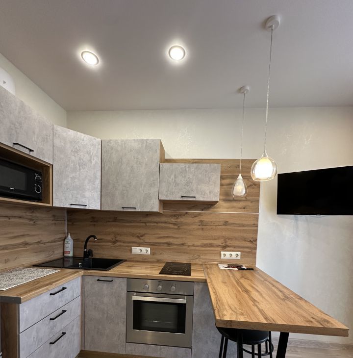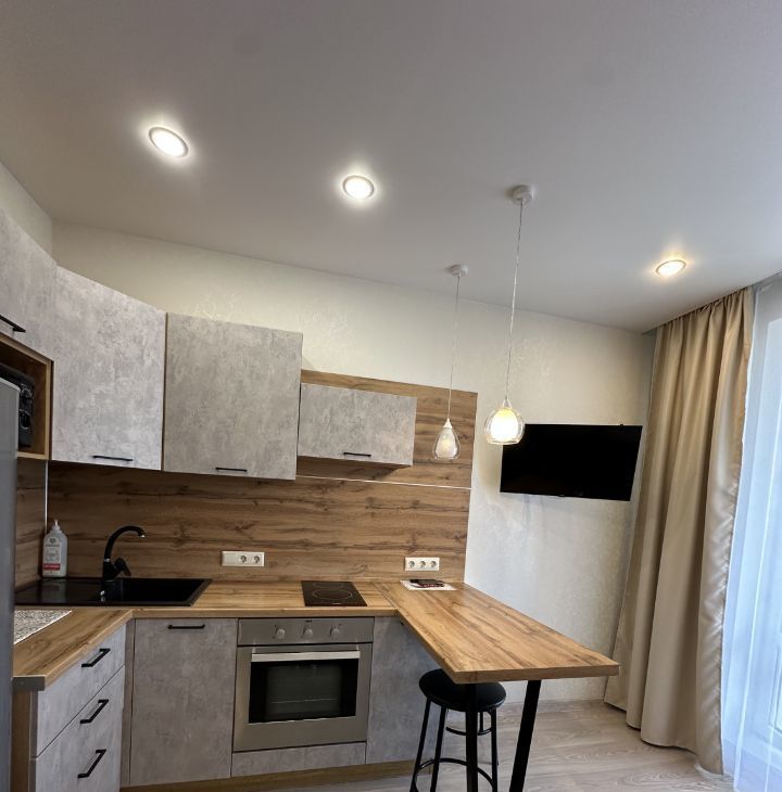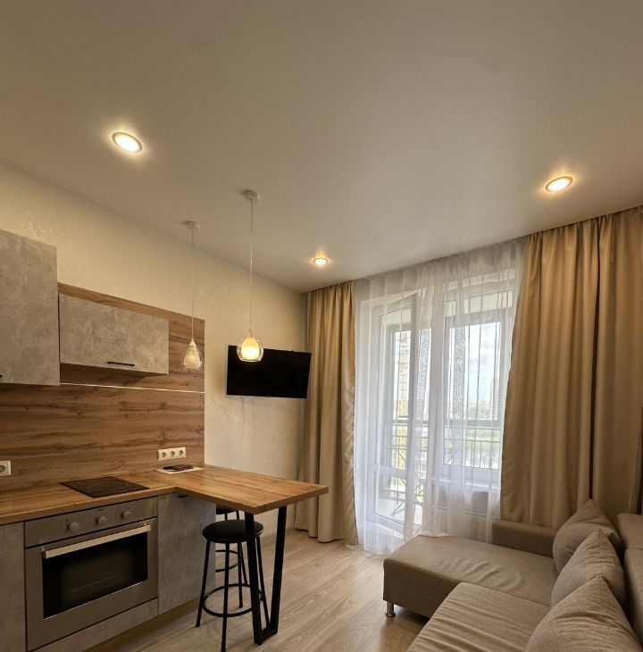 В квартире имеется все необходимое : кухонный гарнитур , барная стойка , индукционная плита , духовой шкаф , микроволновая печь , посуда , раскладной диван , телевизор , кондиционер , шкаф для ваших вещей , ванная , стиральная машина. В квартире имеется просторный балкон с видом во двор!