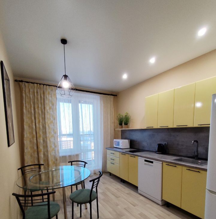 В квартире сделан свежий ремонт с яркими акцентами, установлена современная техника (посудомоечная машина, стиральная машина, индукционная плита и т.д.)