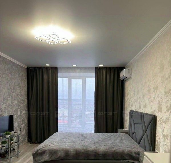 В квартире сделан современный ремонт. Полы: ламинат. Окна: пластиковые. Потолки: натяжные. Сан. узел в кафеле. Есть балкон.