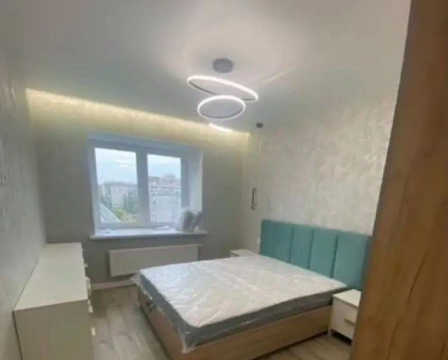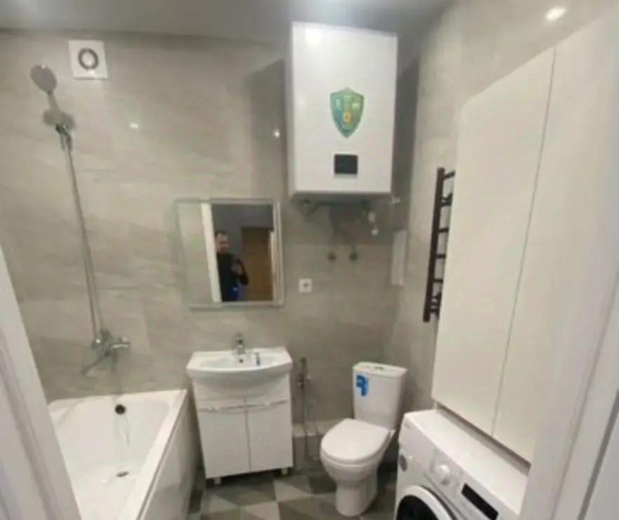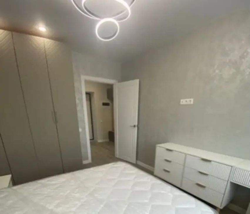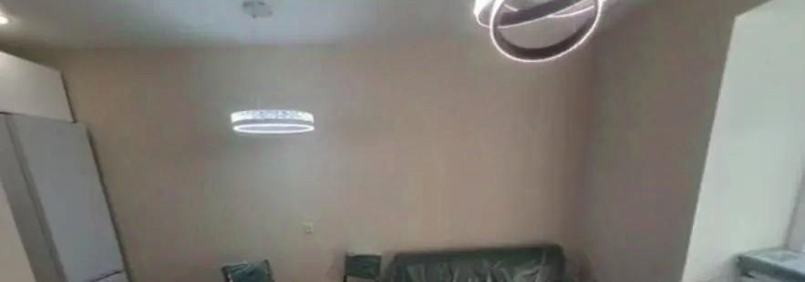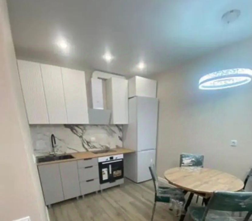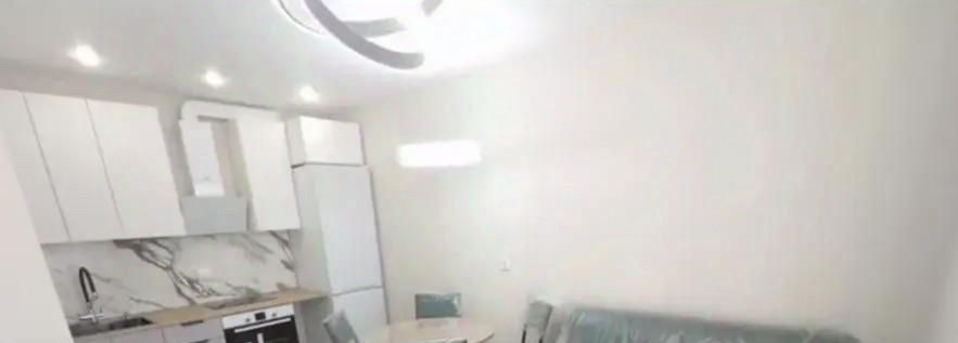 Квартира с новым ремонтом, выполненным в светлых тонах, что создаёт атмосферу тепла и уюта. В комнате установлена современная мебель, включая удобный диван и вместительный шкаф. На кухне есть всё необходимое для комфортного проживания: холодильник, плита, микроволновая печь и обеденный стол. Санузел совмещённый и оборудован современной сантехникой.