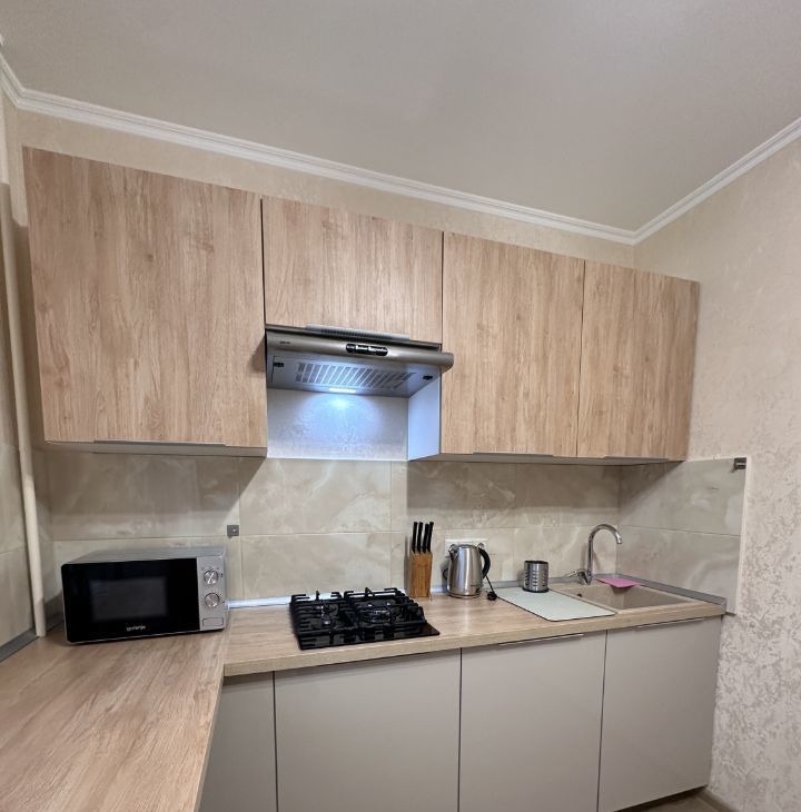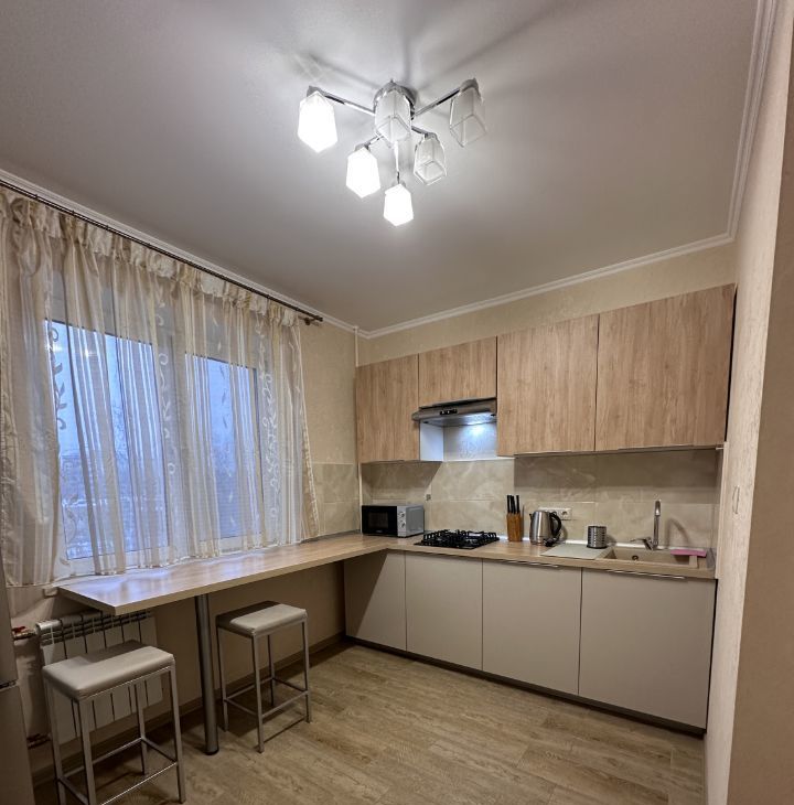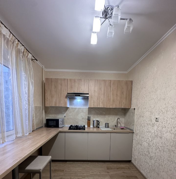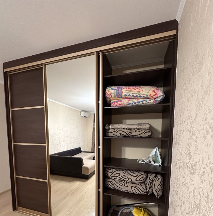 В квартире имеется все необходимое : кухонный гарнитур , газовая плита , духовой шкаф , микроволновая печь , барная стойка , посуда , раскладной диван , кондиционер , журнальный стол , телевизор , большой шкаф купе для ваших вещей , ванная , стиральная машина. В квартире имеется просторный балкон с видом во двор!