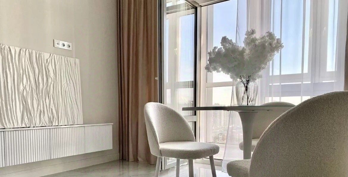В квартире сделан качественный дизайнерский ремонт. Вся мебель и техника новая.