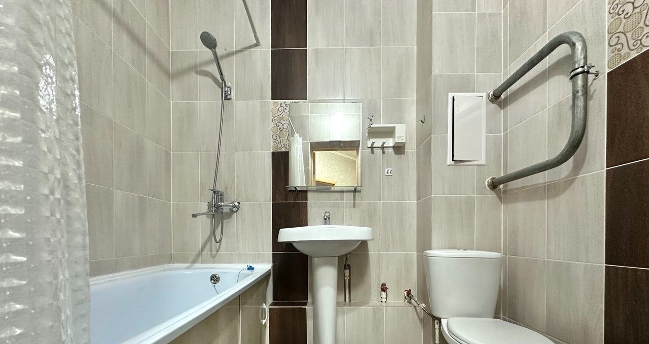 В квартире есть все необходимое для комфортного проживания. Здесь выполнен качественный ремонт, установлены кондиционер, холодильник, телевизор и стиральная машина. Мебель присутствует как на кухне, так и в комнате, поэтому вам не придется думать о дополнительных тратах. В ванной комнате установлена ванна, что позволит вам расслабиться после долгого дня.