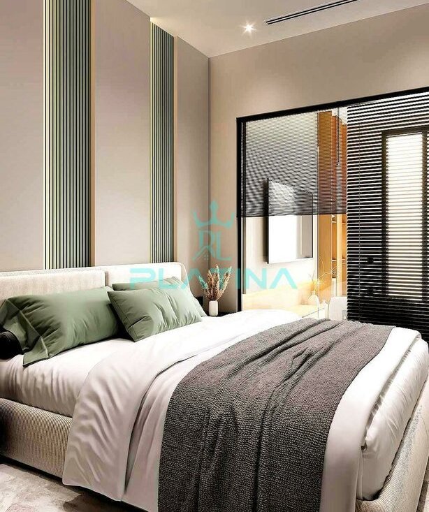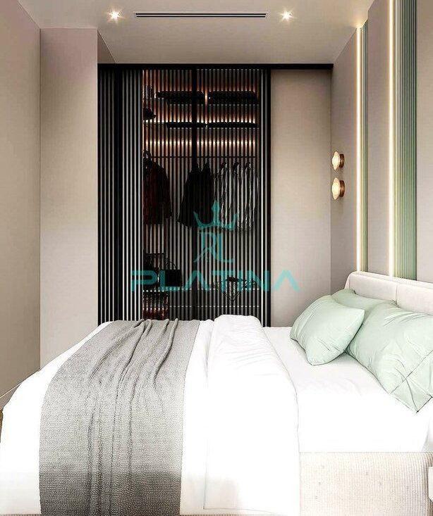 Спальная комната представляет собой настоящий остров спокойствия и комфорта, оборудованный индивидуальной гардеробной зоной для удобного хранения вещей. Современное решение для поддержания идеального микроклимата круглый год — наличие кондиционера, создающего приятную атмосферу даже жарким летом.