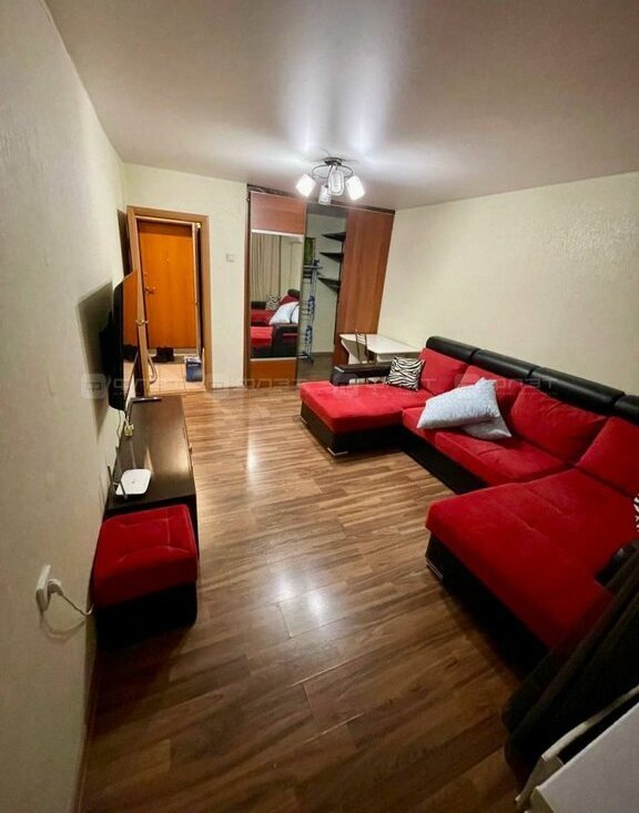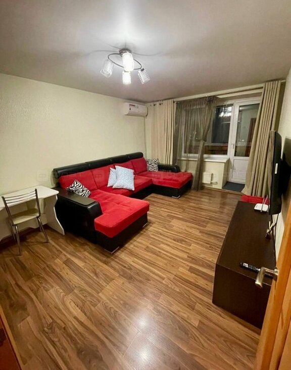 В квартире сделан качественный ремонт. Полы: ламинат. Окна: пластиковые. Потолки: натяжные. Сан. узел в кафеле. Жильцам предоставляется из мебели: кухонный гарнитур, диван раскладной, шкаф, cтол, стулья. Из техники: холодильник, плита, духовка, микроволновая печь, стиральная машина, телевизор, кондиционер. Есть лоджия.