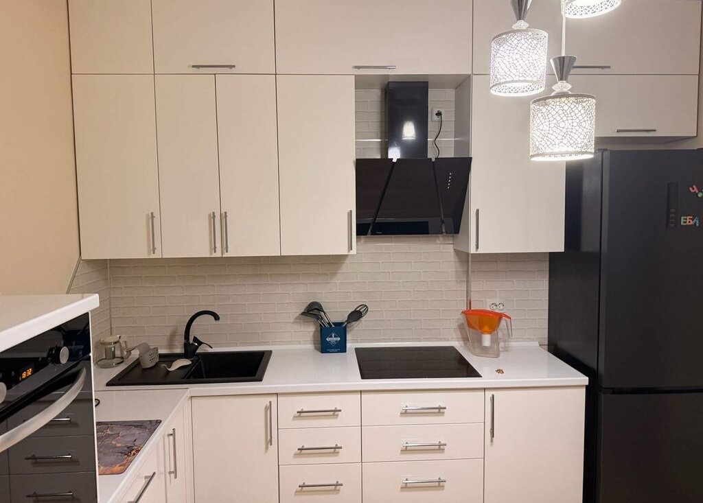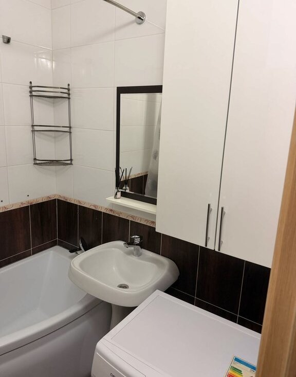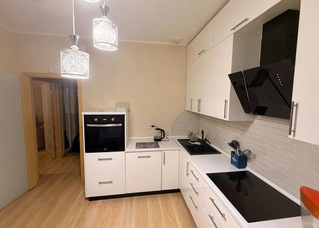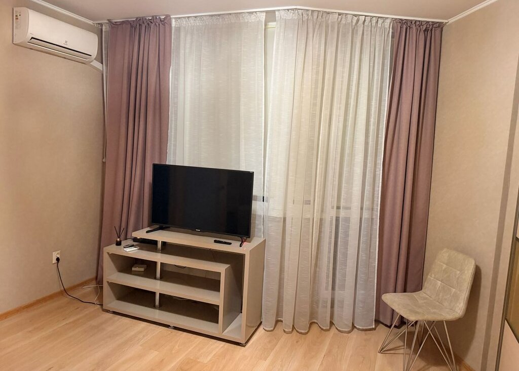 В квартире выполнен свежий евро ремонт. Просторная комната оборудована большим шкаф- купе и диваном, есть кабельное/цифровое ТВ и смарт телевизор, кондиционер. Также гладильная доска, утюг. Кухня оснащена современной техникой: холодильник, плита, микроволновая печь. Есть посуда, электрический чайник, фильтр для воды. Санузел совмещённый, с ванной и стиральной машиной. 39 тыс+ ку. Квартира свободна к заселению.+7 *** *** ** **