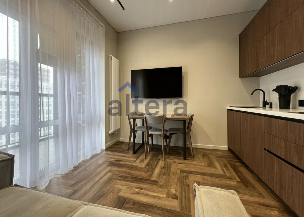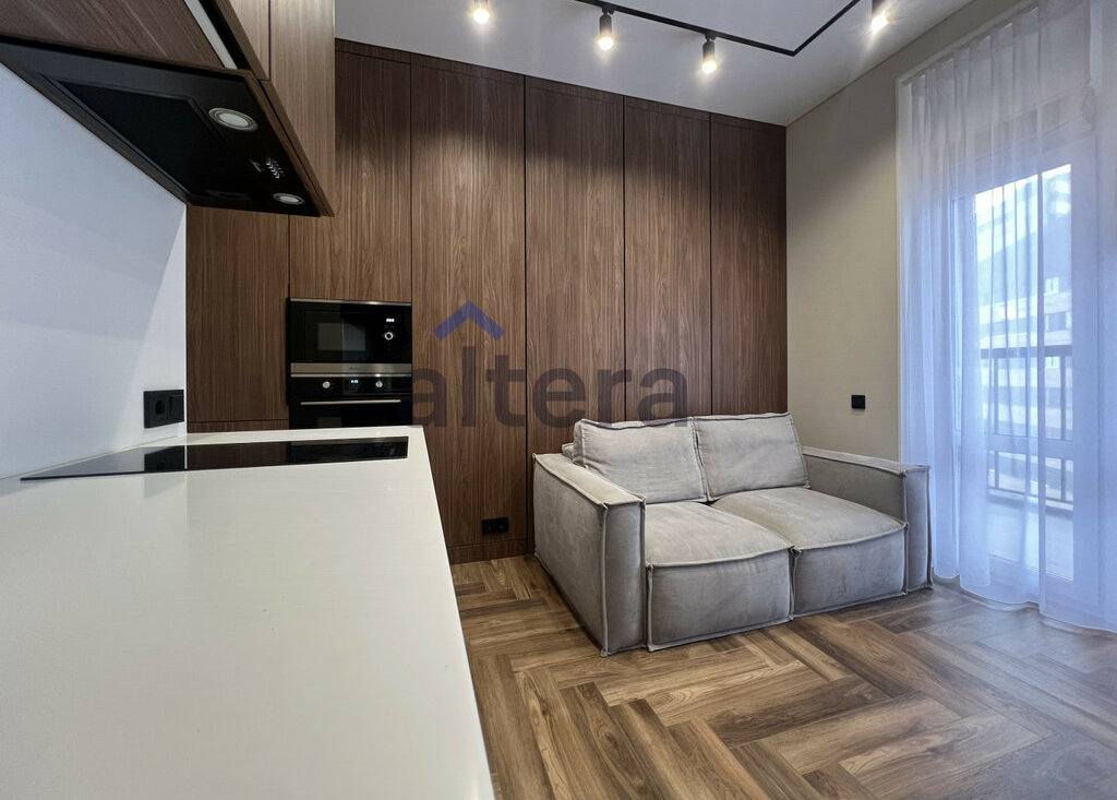 О квартиреЭргономичная планировка:спальная комната с гардеробнойгостиная-кухня с выходом на балконавторский дизaйн и видoвые xaрактеpистикиквартира светлая, с продуманным использованием пространствавстроенная премиум техника Полностью готова к проживанию