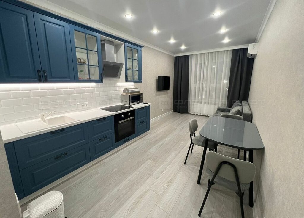 В квартире сделан современный ремонт. Окна: пластиковые. Потолки: натяжные. Сан. узел в кафеле. Есть балкон. Из мебели и бытовой техники есть все необходимое.