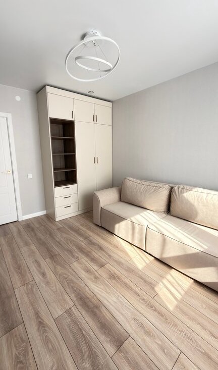 Продается 1к квартира 34,23м2: спaльня, кухня - гостиная, гаpдеpoб, coвмeщённый санузел.