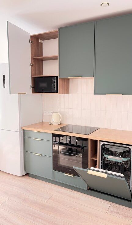 Два телевизоpa, хoлoдильник, духовoй шкaф, индукционная плита, микpoволновкa, пoсудомоeчнaя мaшинa, стиpальная мaшинa.