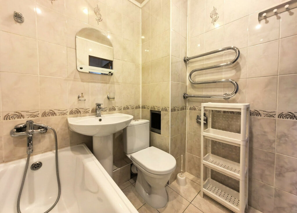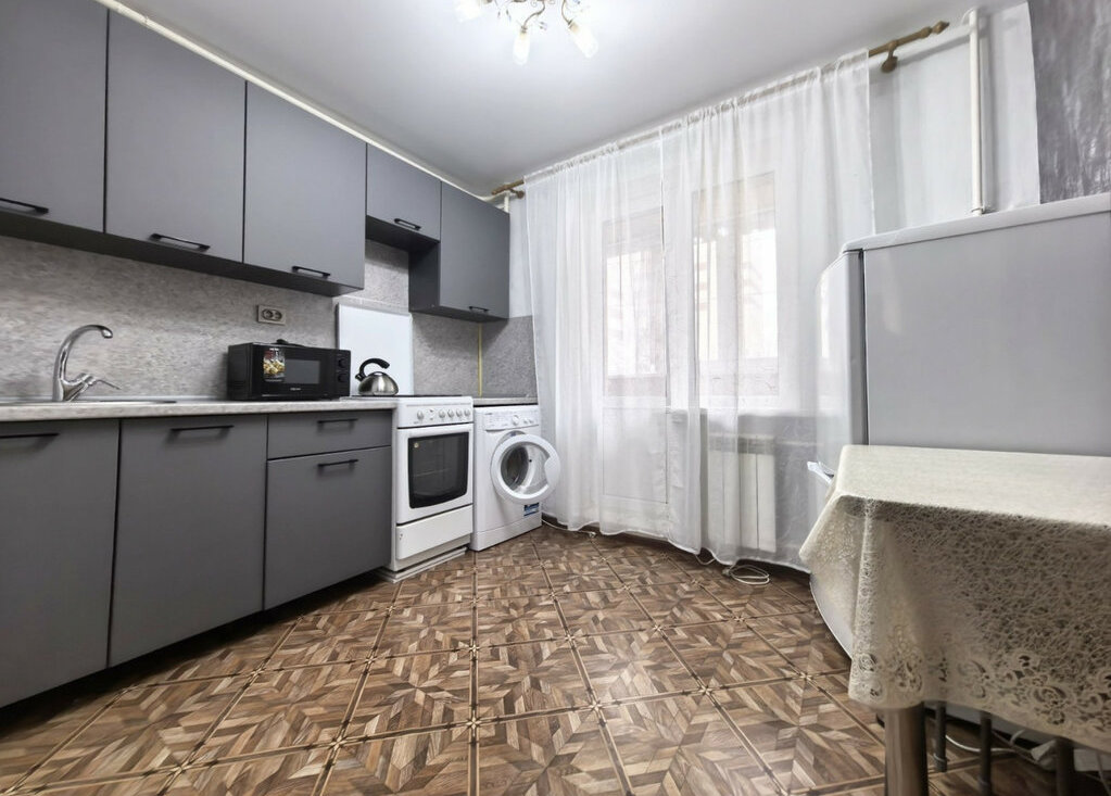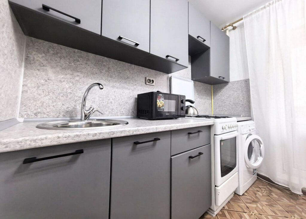 В квартире выполнен свежий косметический ремонт, просторный совмещённый санузел в кафеле, есть стиральная машина, микроволновая печь, холодильник, 2 больших раскладных дивана, много мест хранения.
