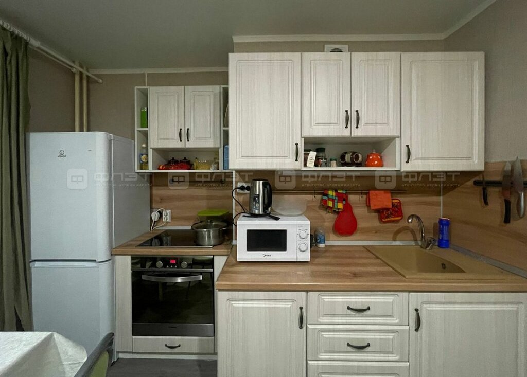 Из техники: 2 холодильника, варочная панель, духовка, чайник, микроволновая печь, стиральная машина, пылесос, 2 телевизора.