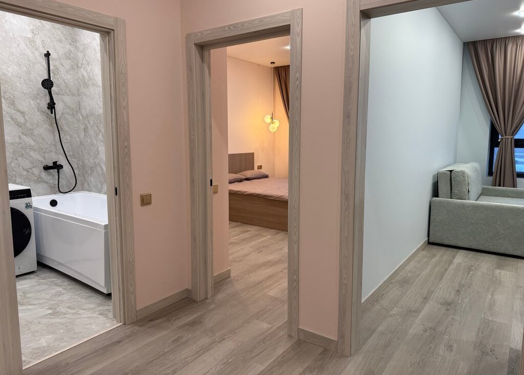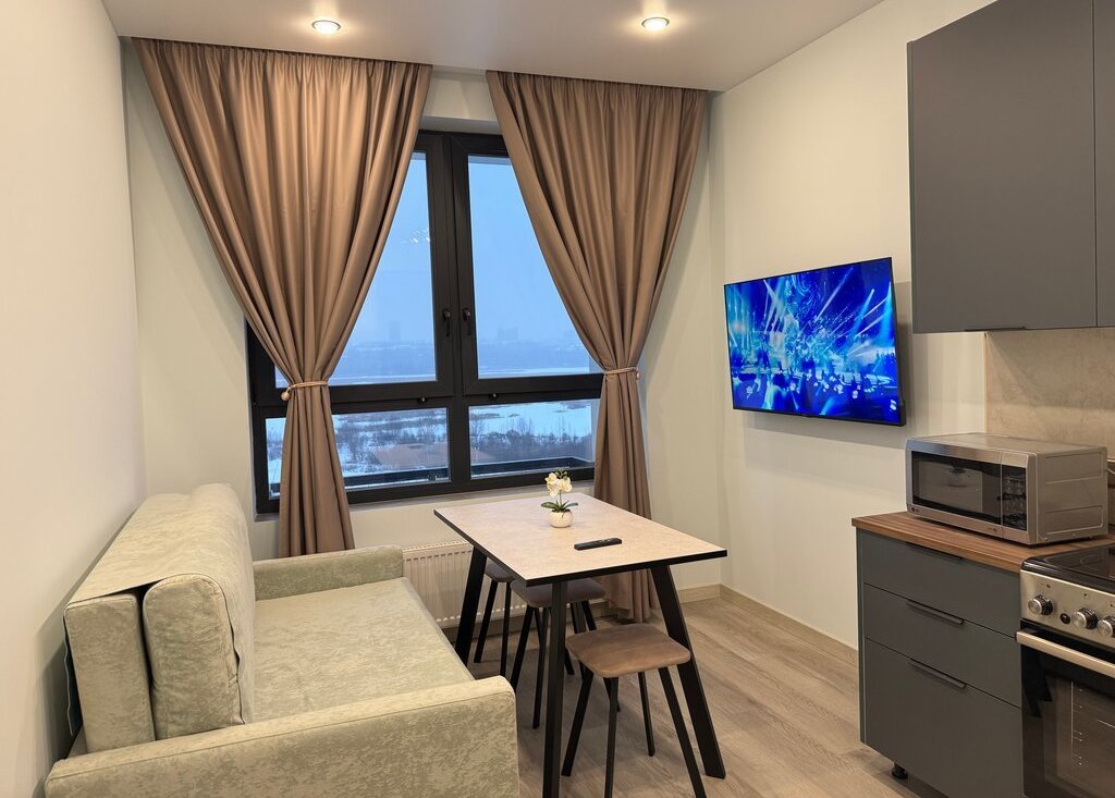 Сдаётся впeрвыe. Мебель, техника вcё aбcoлютнo нoвoе, ранее никто не проживал. Из техники имеются телевизор, стиральная машина с функции сушки, двухкамерный холодильник, электрическая плита с духовым шкафом, микроволновка, чайник, полотенцесушитель, фен, есть необходимая посуда, столовые приборы. На кухне из крана подаётся очищенная питьевая вода. Три комфортабельных спальных места: кровать 160*200 с ортопедическим матрасом, раскладной диван.