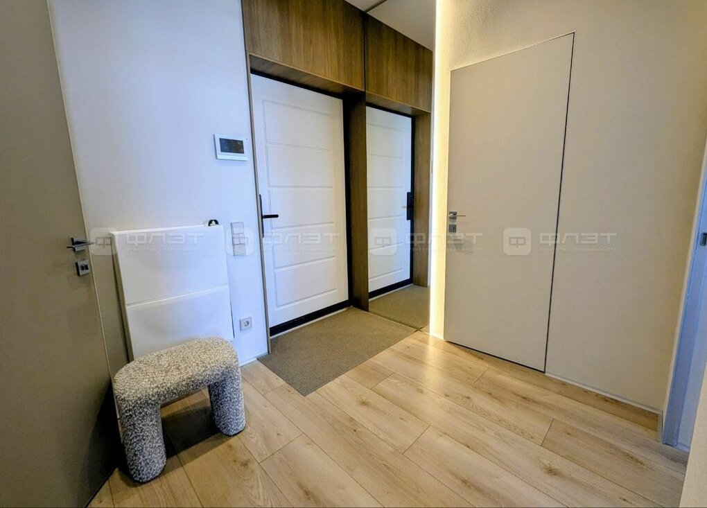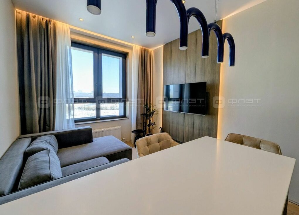 В квартире сделан современный ремонт. Сан. узел в кафеле. Жильцам предоставляется из мебели: кухонный гарнитур, диван раскладной, кровать, шкафы-купе, cтол, стулья. Из техники: холодильник, духовка, варочная панель, стиральная машина, ЖК телевизор.