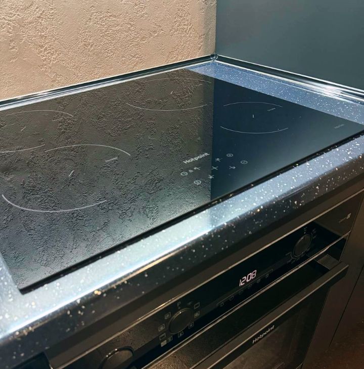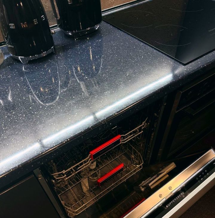 Кухня выполнена из эмали, под заказ.