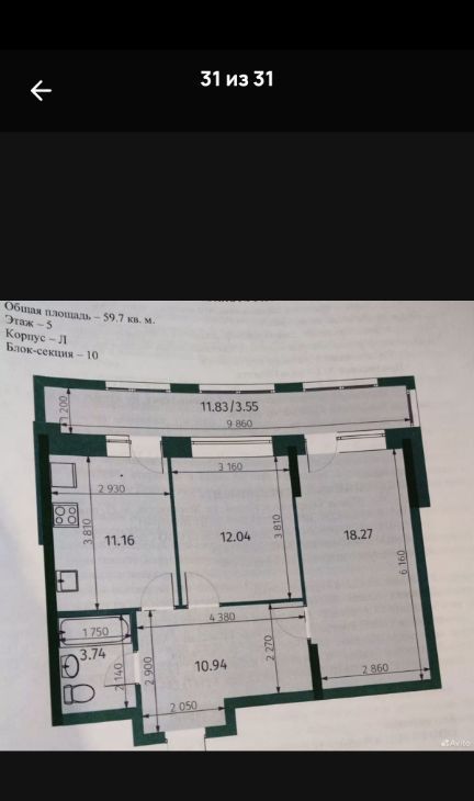 2-к кв. Татарстан, Казань Бухарская ул., 32к2 (59.0 м²)