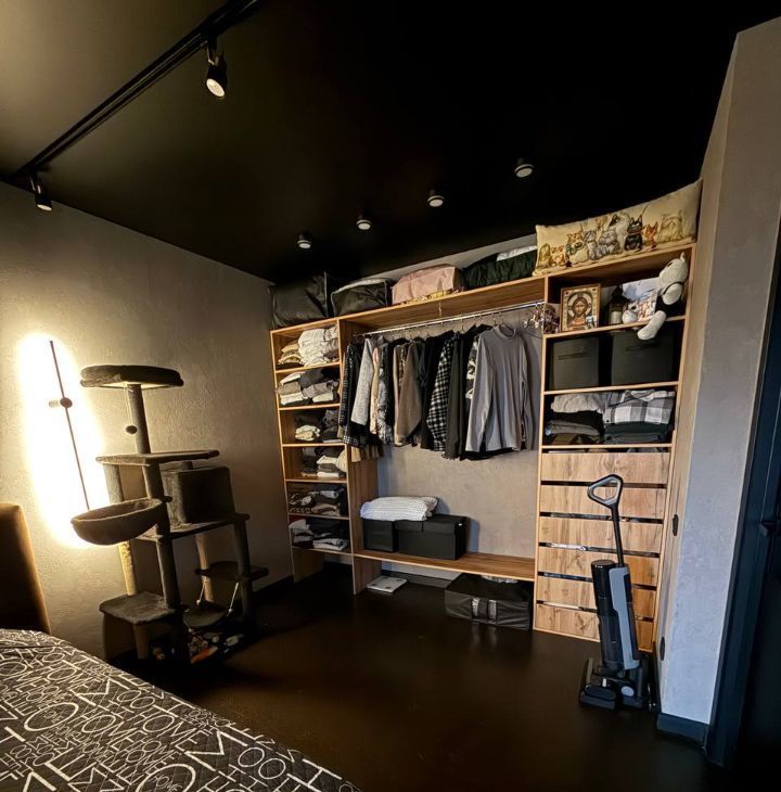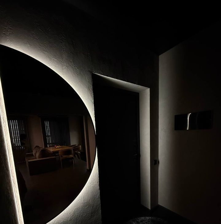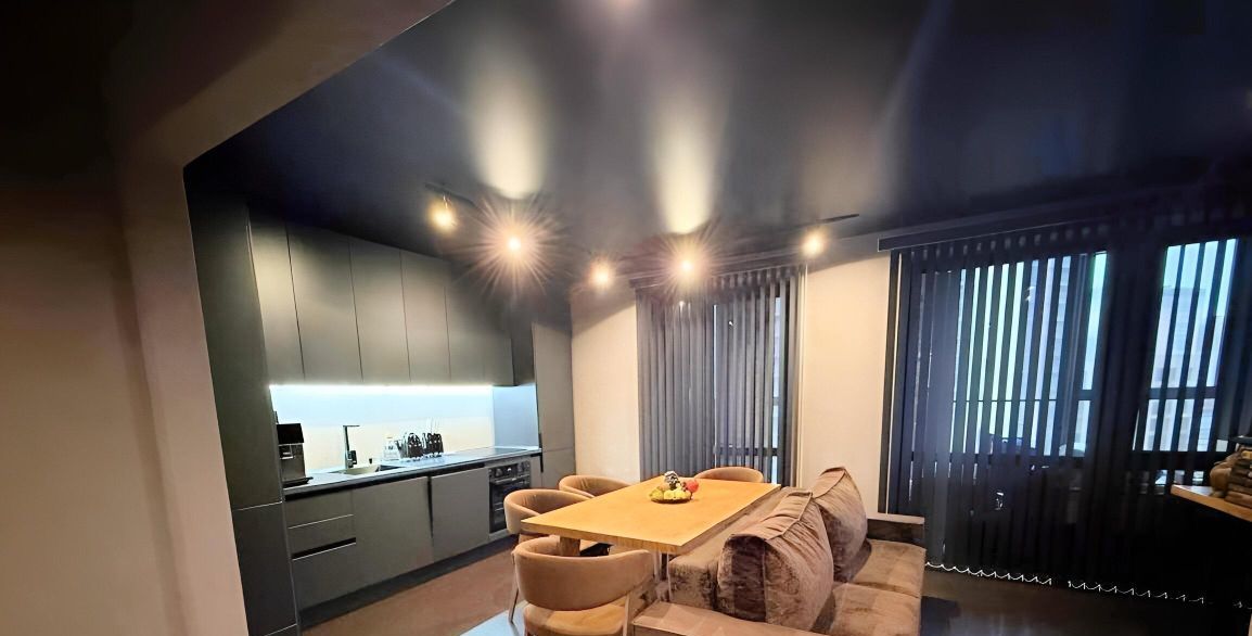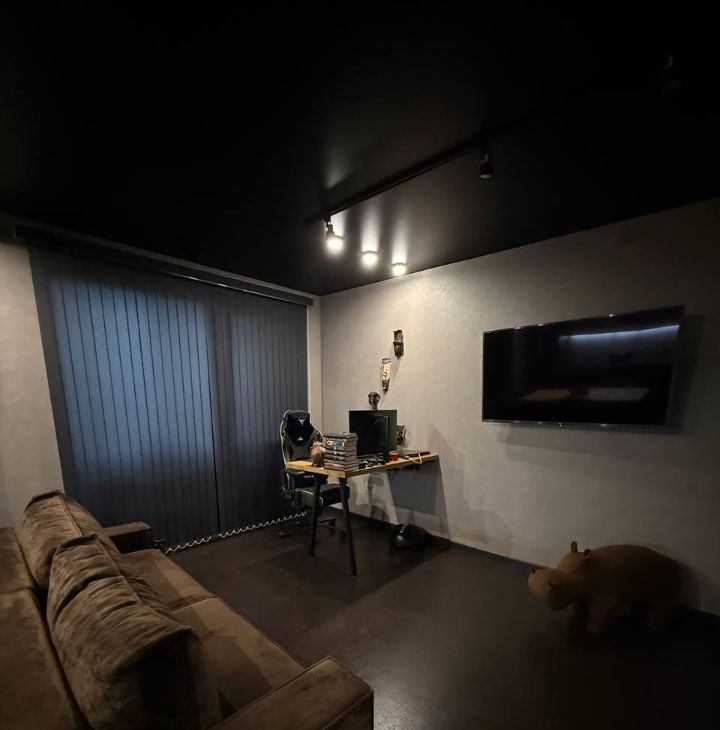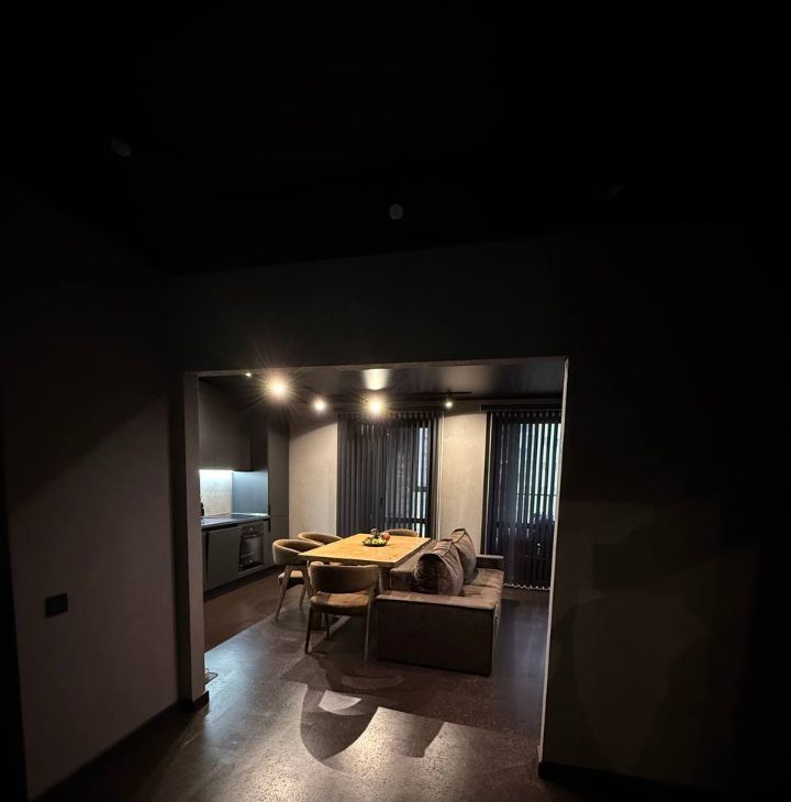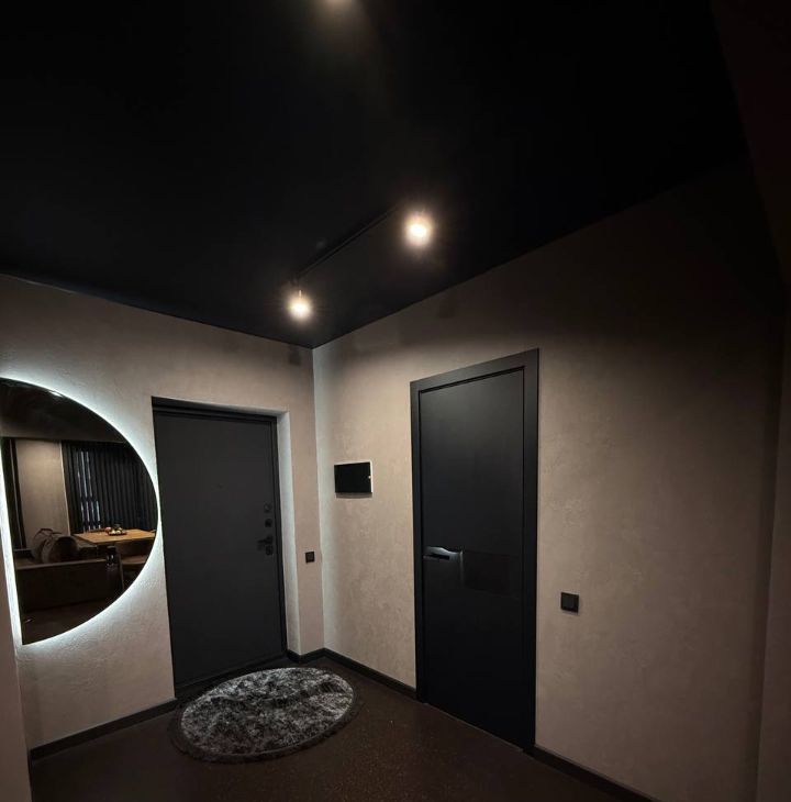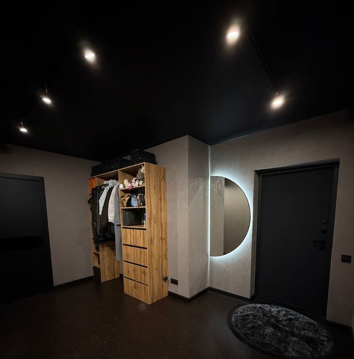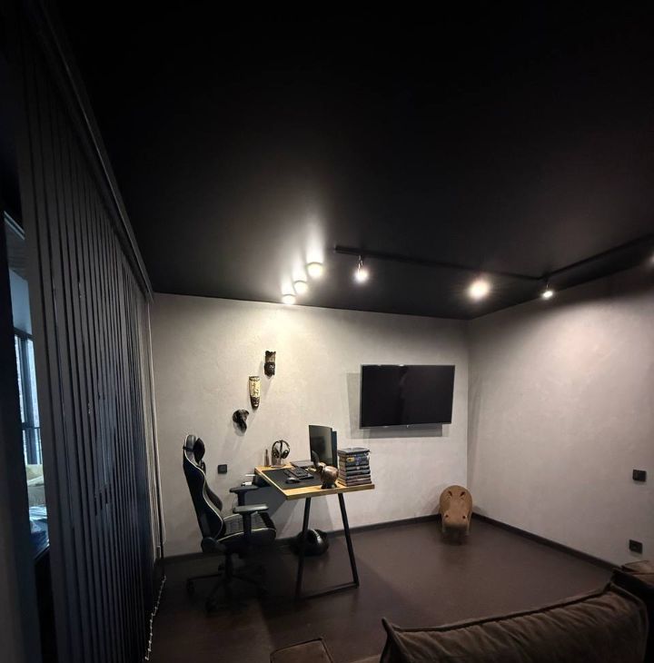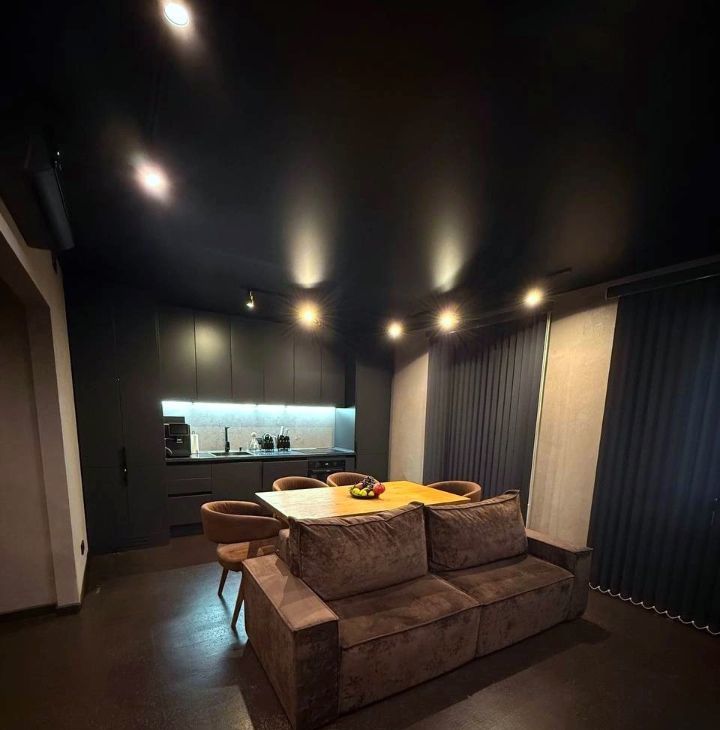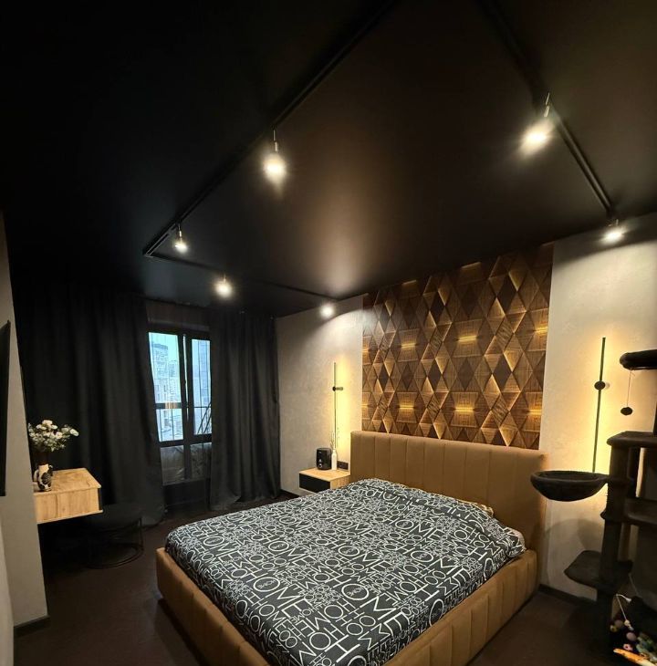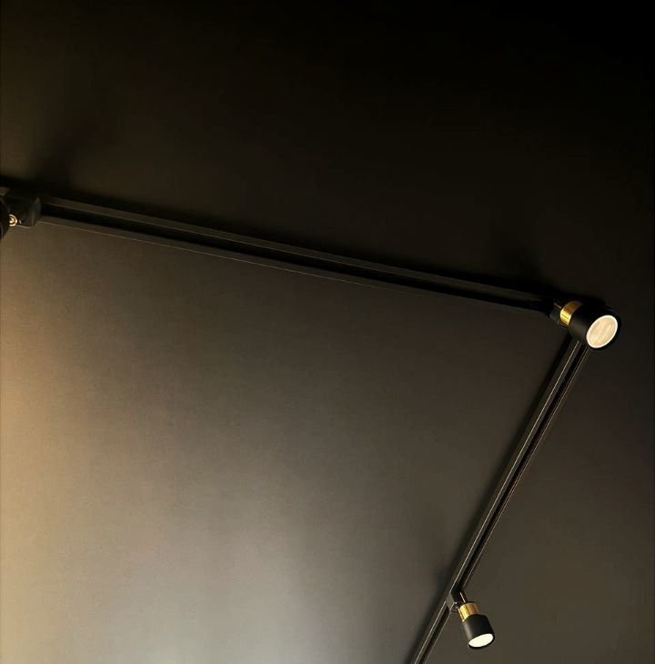 Потолки с трековые освещением, можно добавлять любое количество ламп ( мы любим приглушенный свет, себе делали минимальное освещение).