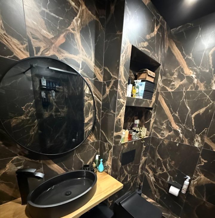 Вся сантехника стильная чёрная.
