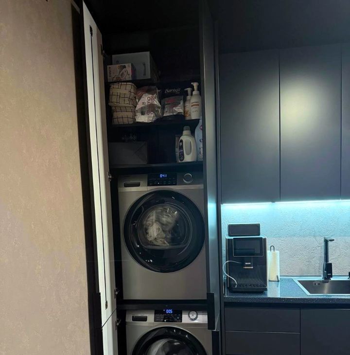 В квартире есть все необходимое для комфортной жизни : обьедененная большая кухня- гостиная, большой обеденный стол, рабочая зона, уютная спальня.