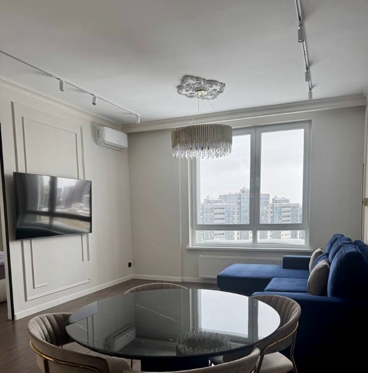 Квартира полностью готова для комфортного проживания. Сделан качественный ремонт, установлена необходимая мебель как на кухне, так и в комнате. Для вашего удобства в квартире есть кондиционер, холодильник, посудомоечная и стиральная машины, а также телевизор. Совмещенный санузел оборудован ванной. Просторная лоджия — отличное место для отдыха и хранения вещей.
