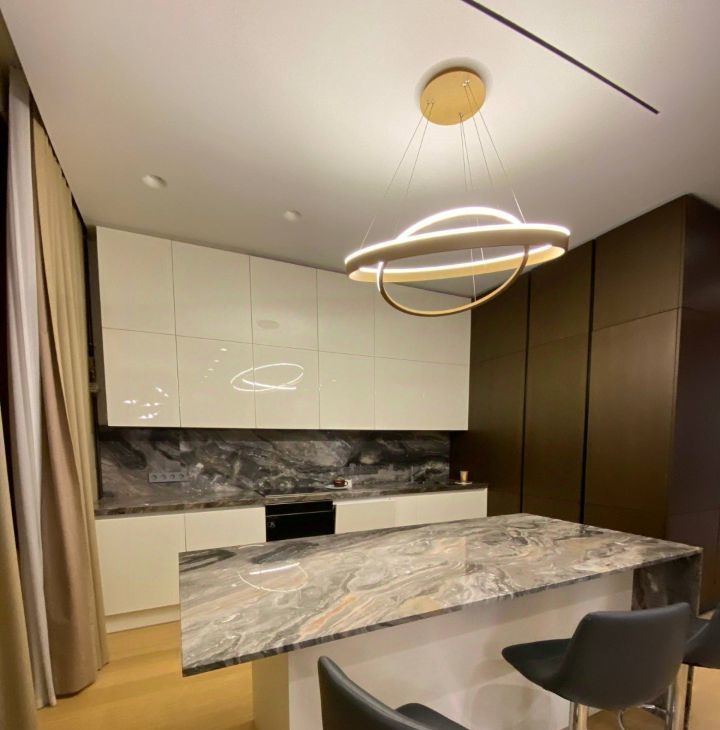 Вас ждет безупречный дизайнерский ремонт, выполненный из дорогих материалов, который создает атмосферу роскоши и уюта. Квартира включает просторную кухню-гостиную для встреч с близкими, две стильные ванные комнаты, функциональную гардеробную и уютную спальню с большой кроватью и прекрасным видом из окна, который будет радовать вас каждый день. Эта квартира воплощение комфорта и высокого статуса. Подземный паркинг.