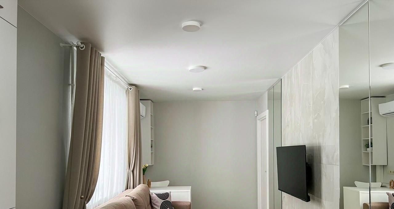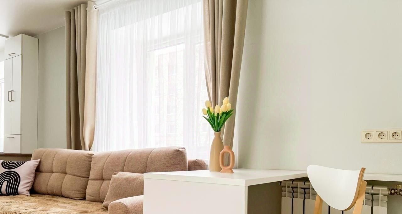 В квартире сделан современный евроремонт, что создает комфортную и стильную атмосферу. Жилье полностью оснащено необходимой мебелью в жилых комнатах, а также бытовой техникой, включая холодильник, телевизор и стиральную машину. В ванной комнате установлена душевая кабина. Окна квартиры выходят во двор, что обеспечивает тишину и уединение.
