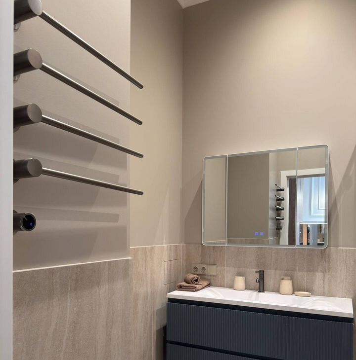 Также квартира оснащена абсолютно всей необходимой новой мебелью и техникой, включая посудомоечную машину, стиральную машину, кондиционер, встроенный холодилЬниК!