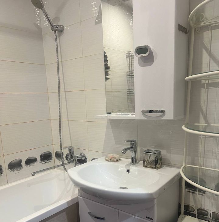 В квартире выполнен косметический ремонт, что придаёт ей свежий и аккуратный вид. Здесь есть вся необходимая техника для комфортного проживания: кондиционер, холодильник, посудомоечная и стиральная машины, телевизор. На кухне и в комнате имеется мебель, поэтому можно сразу заселяться, не беспокоясь о дополнительных покупках. Санузел оборудован ванной, а окна выходят на улицу, что обеспечивает хорошую освещённость. Также в квартире есть балкон, где можно наслаждаться видом на окрестности.